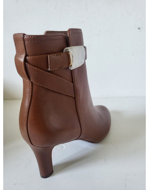 Bottines cuir marron talon 7.5 cm fermeture éclair