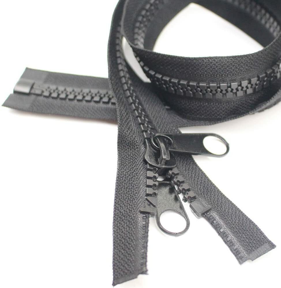 Lot de 2 fermetures éclair plastique glissière séparable noire double tire 1 m (