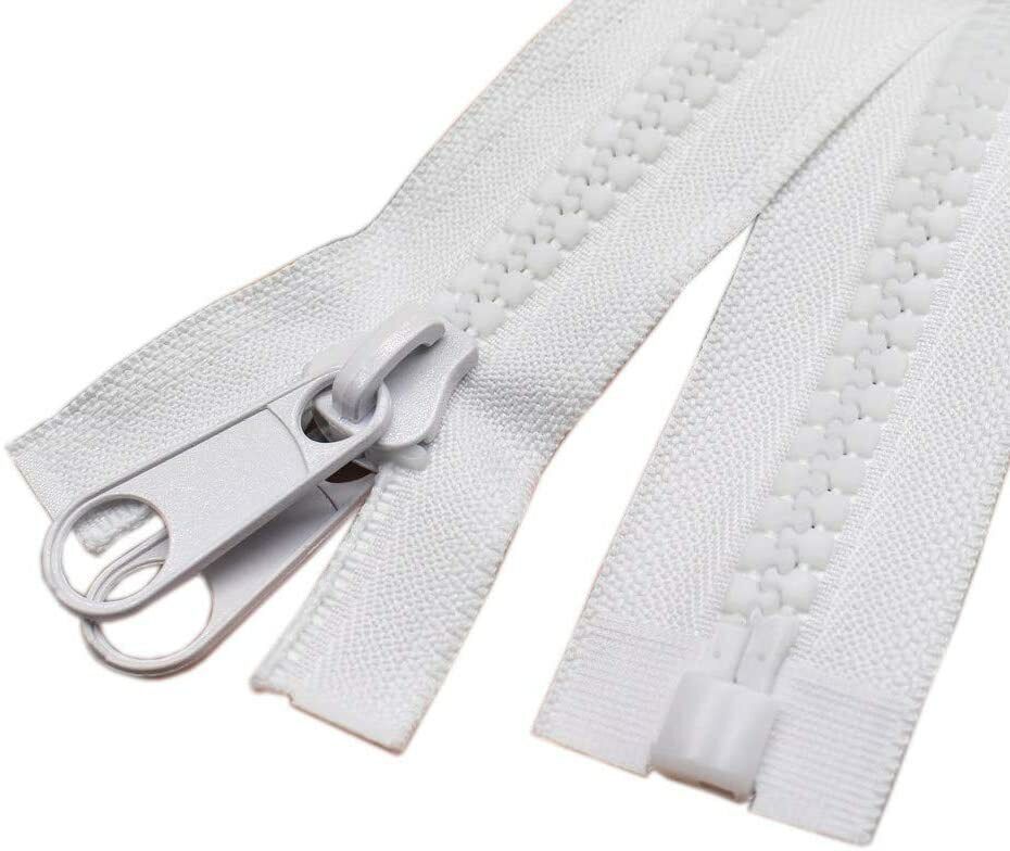 Lot de 2 fermetures éclair plastique glissière séparable blanc double tire 1.5m