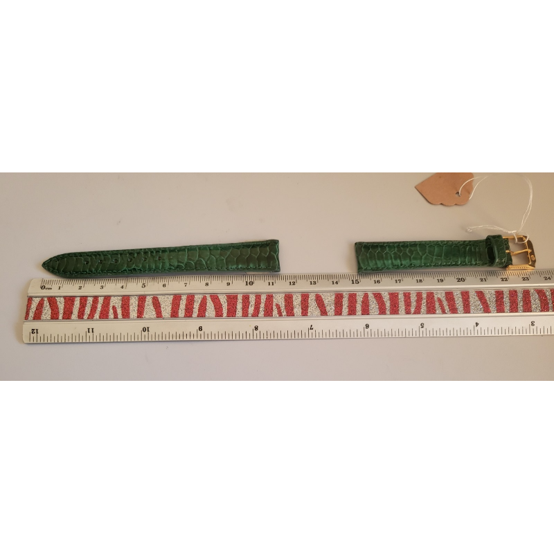 KAUFMANN Bracelet de montre vert brillant cuir fait main Gallina 16 mm (P010)