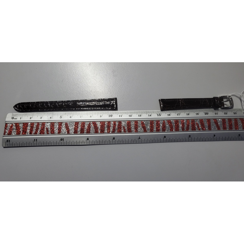 KAUFMANN Bracelet de montre noir brillant cuir fait main Krokodil 12 mm (P019)