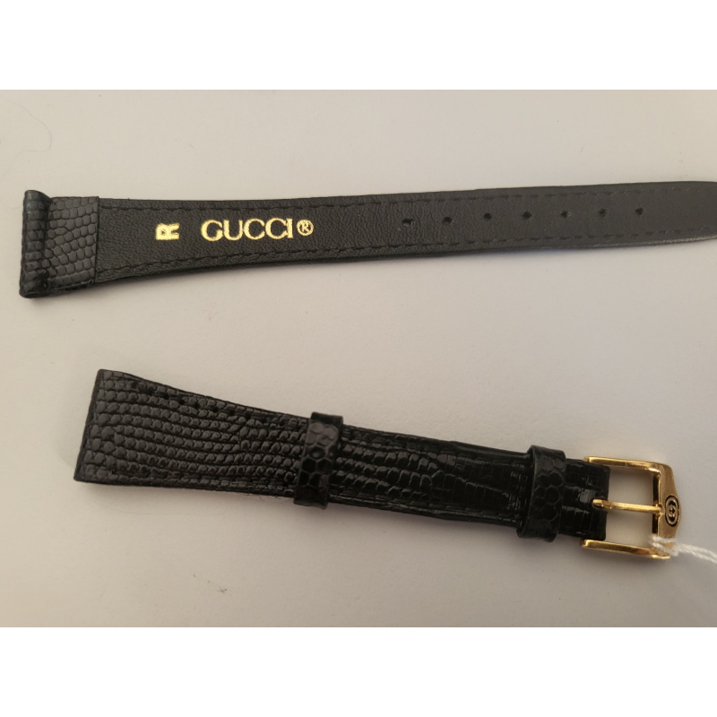 GUCCI Bracelet de montre noir cuir 15 mm (P052)