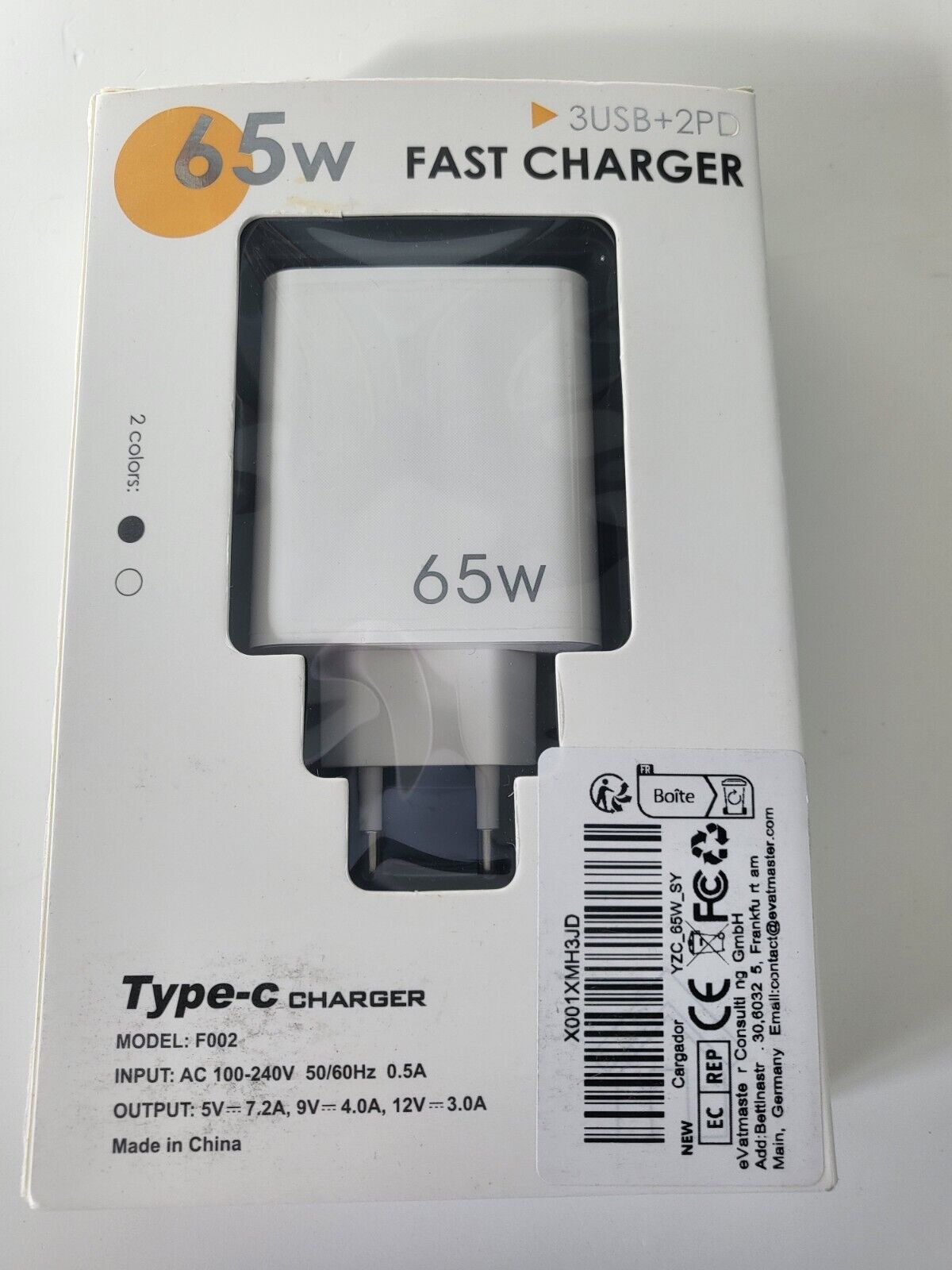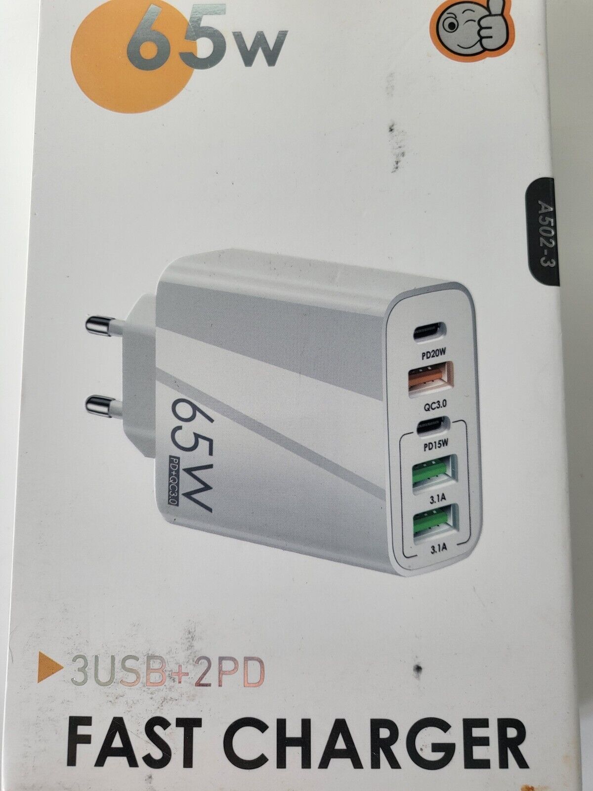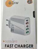 Chargeur super rapide blanc 65W avec 3 ports USB + 2 ports PD réf F002
