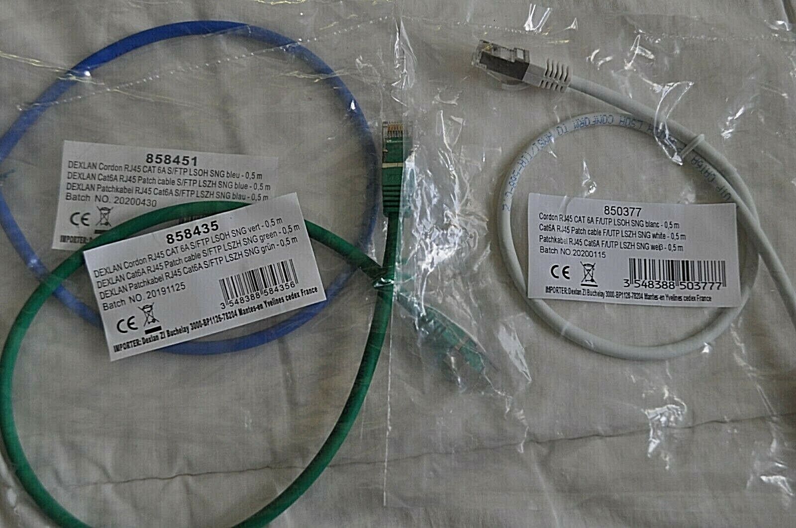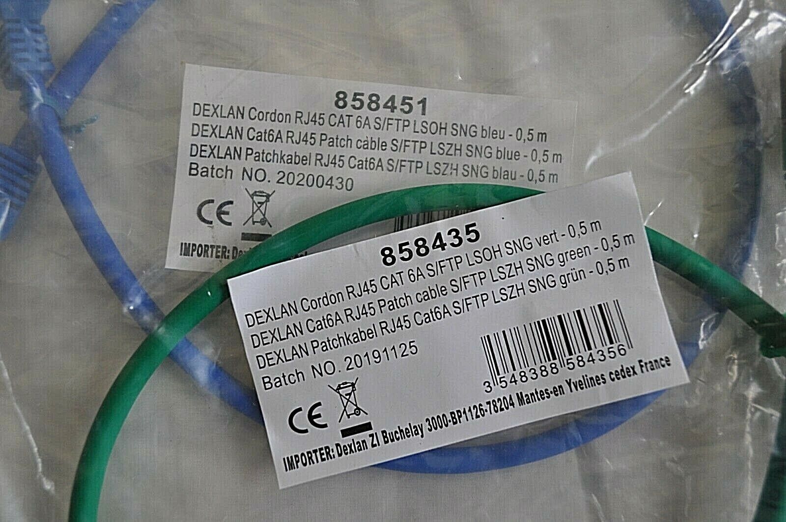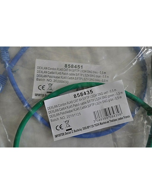 DEXLAN Lot de 3 câbles RJ45 cat6A 1 F/UTP + 2 S/FTP 0.5 m bleu blanc vert neuf