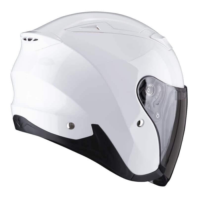 Casque Scorpion Exo-230 Blanc Casque jet au design moderne, très pratique et fonctionnel pour un usage urbain. Fabriqué en polycarbonate avancé, il possède une grande visière transparente avec prédisposition pour Pinlock® (non inclus) et un rembourrage intérieur Kwikwick C™ très confortable.