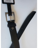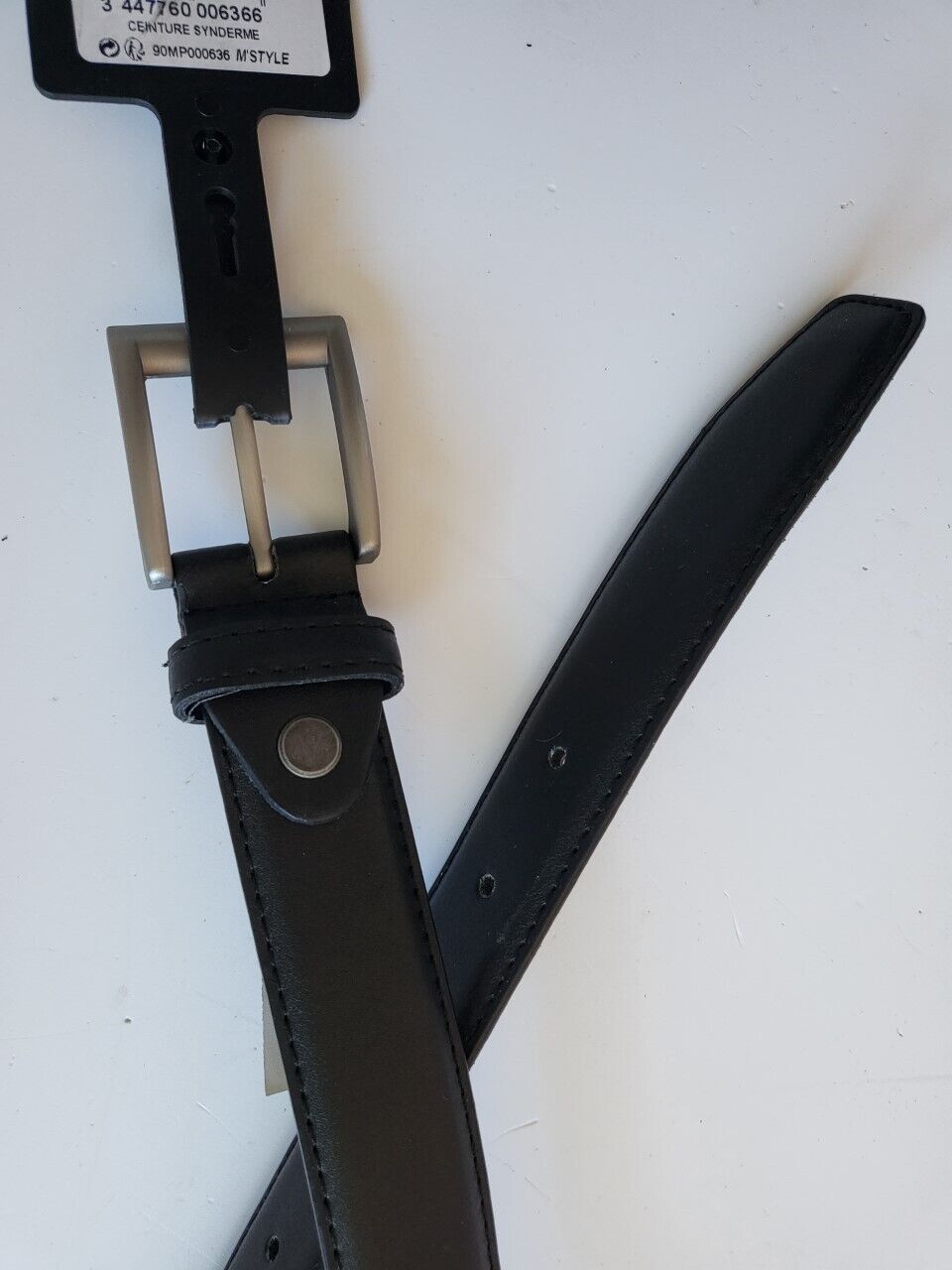 M'STYLE Ceinture PU doublure croûte de cuir de bovin noir 30 mm réglable 115 120