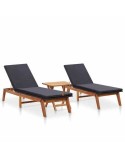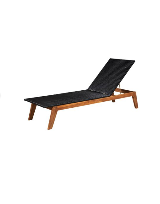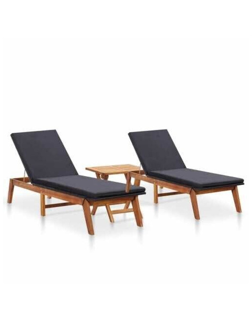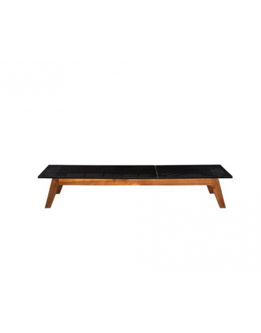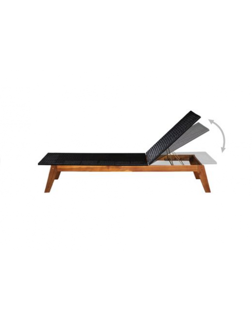 2 CHAISES LONGUES TRESSEES RESINE NOIRE ET TABLE BOIS D'ACACIA
