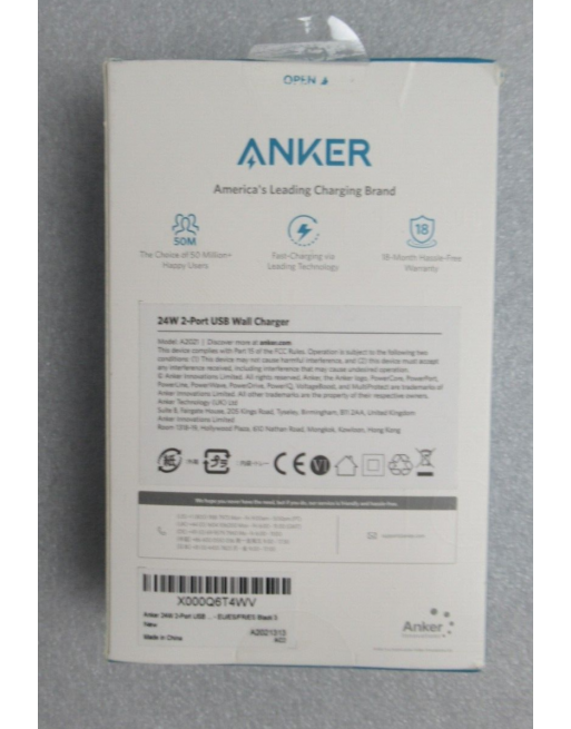 ANKER A 2021 CHARGEUR SECTEUR TELEPHONE 24W USB 2 PORTS NOIR
