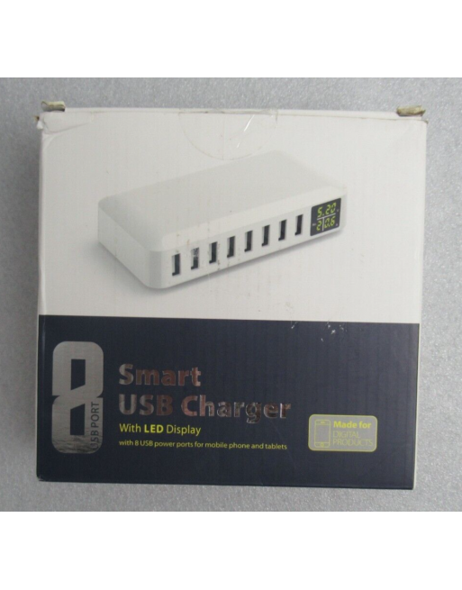 iLepo Chargeur USB 40 Watts 8A 8 Ports avec Affichage à LCD, Station de Recharge Intelligente Prise Multiple USB Compatible avec iPhone XS XR SE, iPad, Samsung Galaxy, Redmi, Téléphones Android etc.