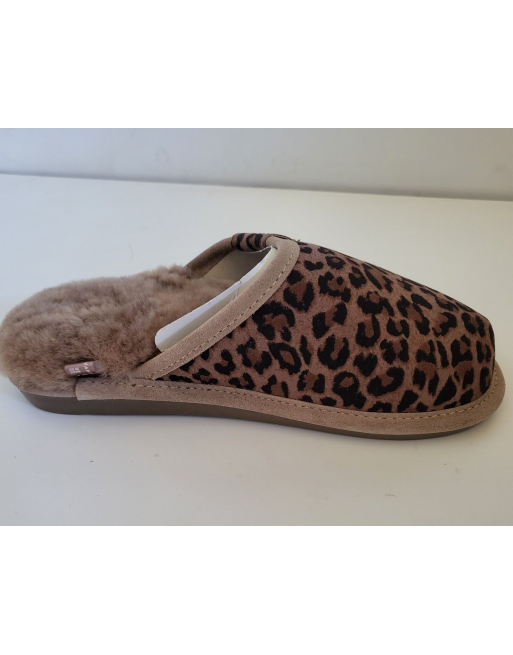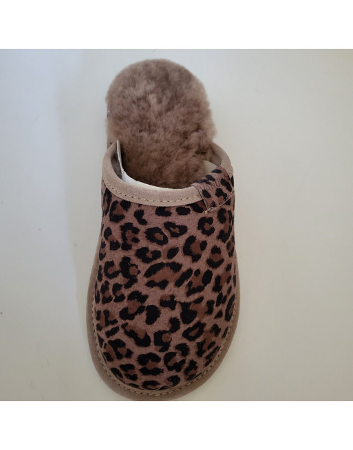 VANUBA Mules cuir léopard fourrées peau de mouton fait main taille 37