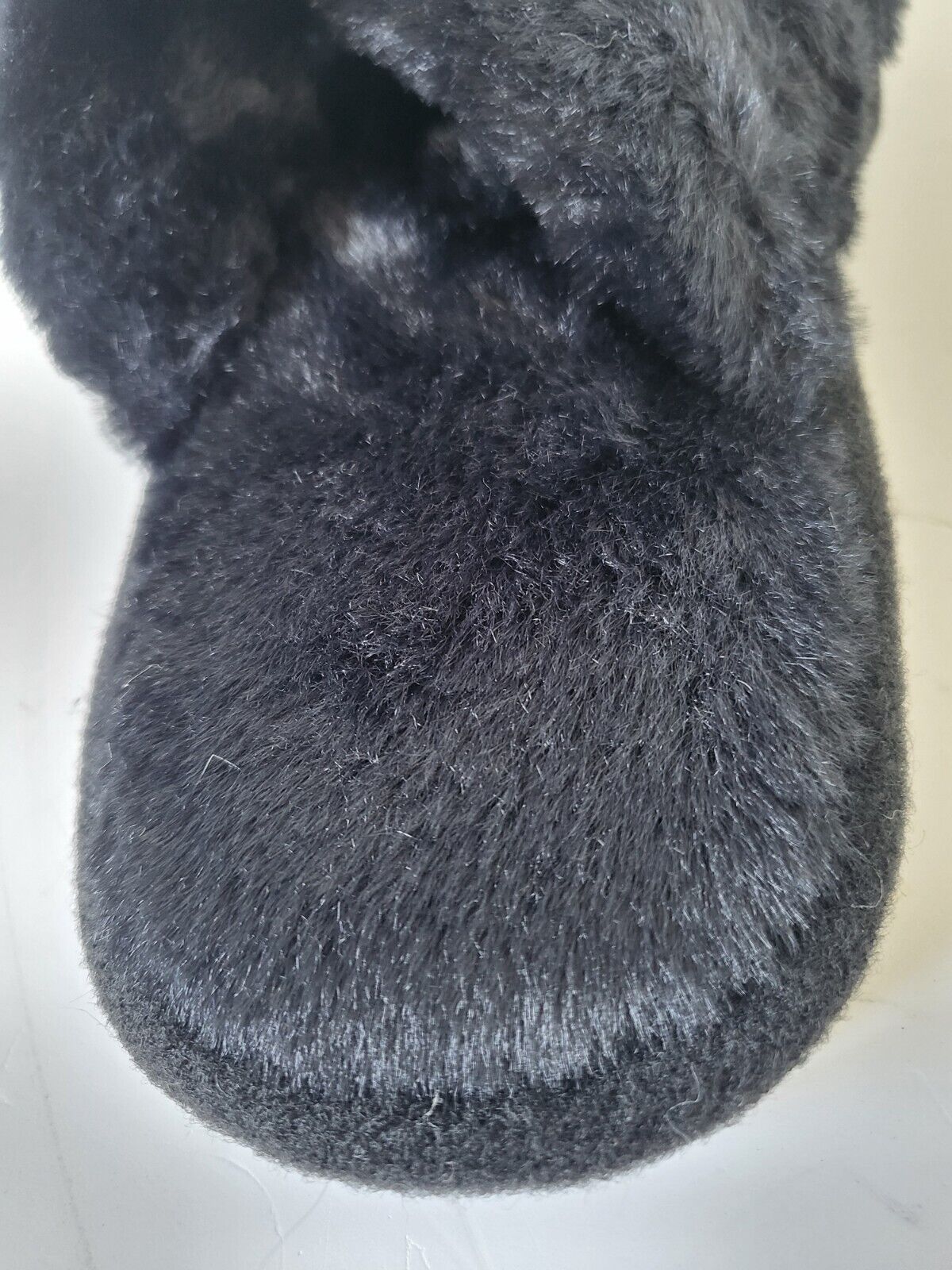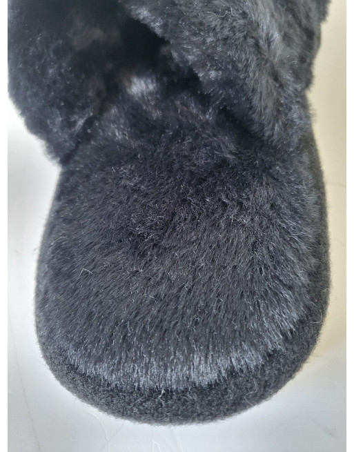 Pantoufles ouvertes fausse fourrure noire talon plat Taille 36/37