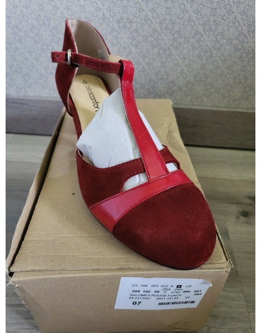 PEDICONFORT Largeur confort Sandales rouge vernis bordeaux talon 6 cm Taille 41