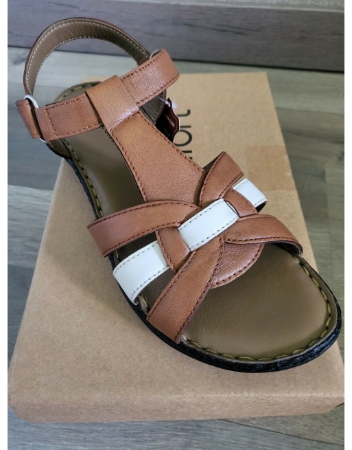 PEDICONFORT Grande Largeur aérosemelle Sandales marron blanc talon 3.5 cm T 38