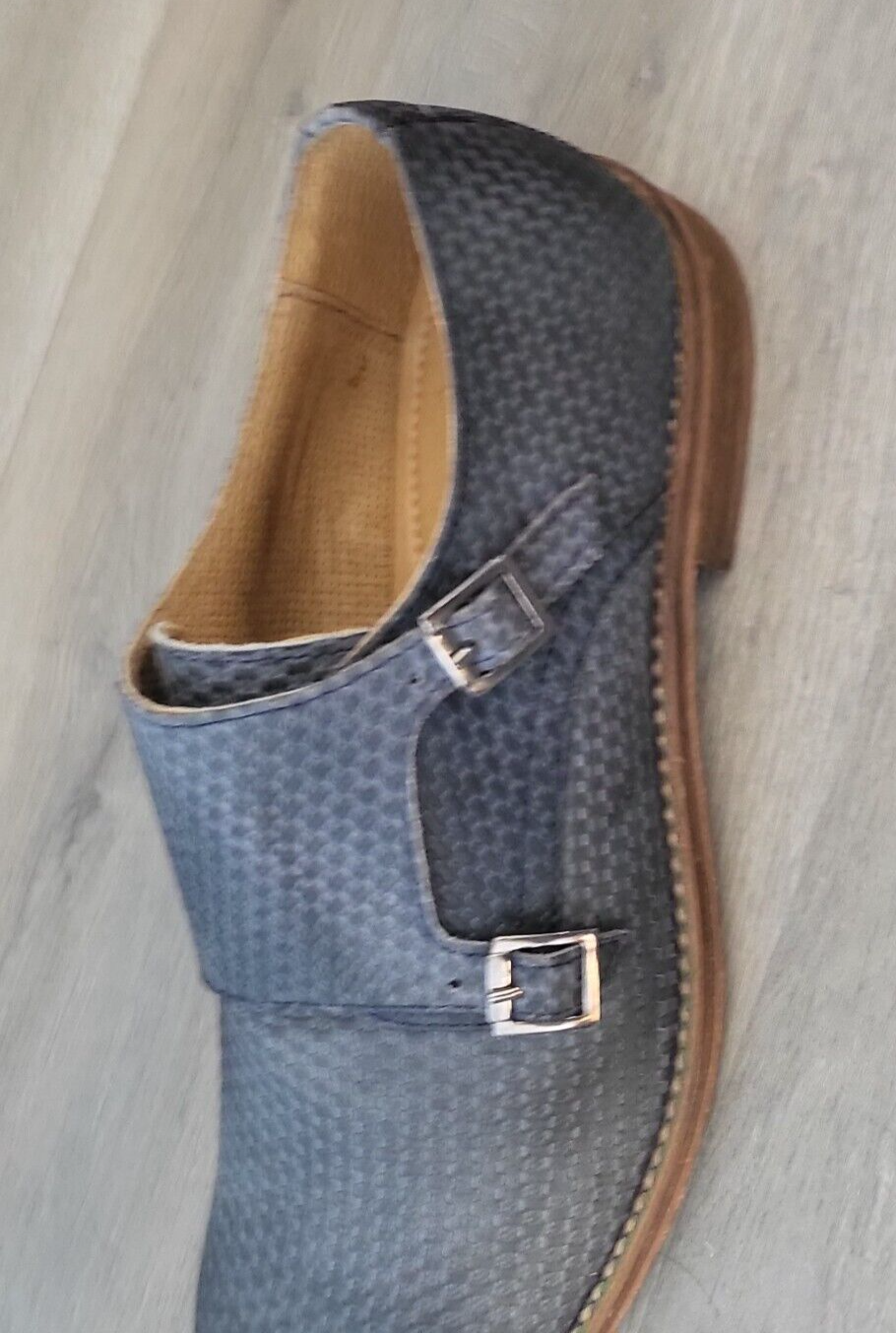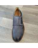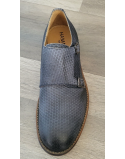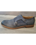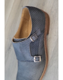 Mocassins cuir bleu canné double boucle talon plat