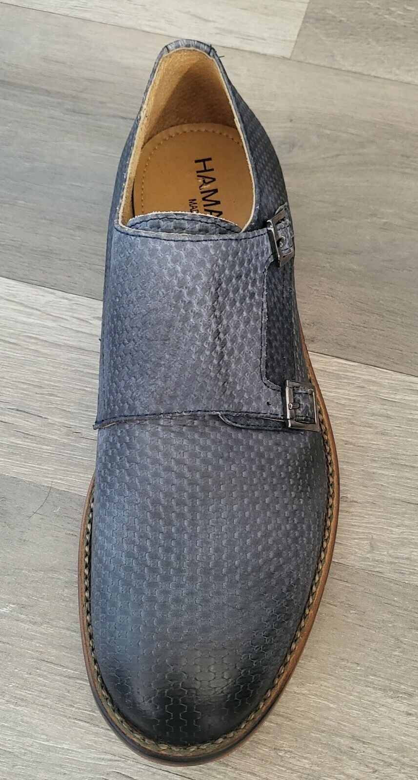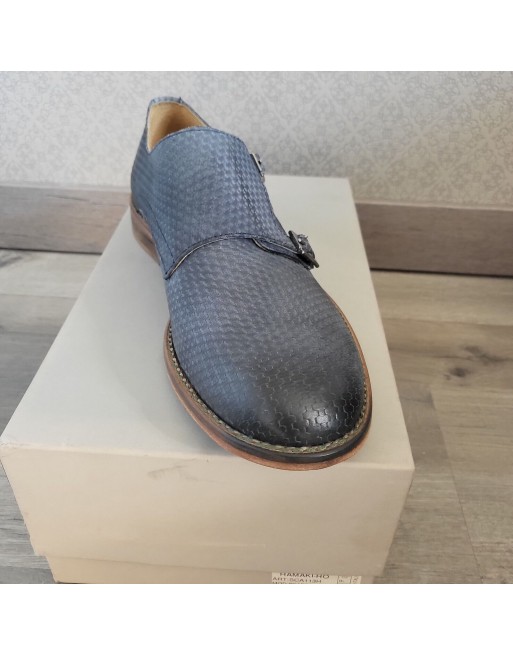HAMAKI HO Mocassins cuir bleu canné double boucle talon plat Taille 42