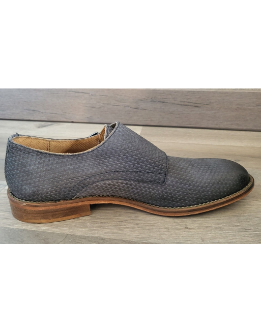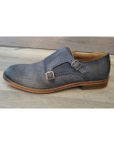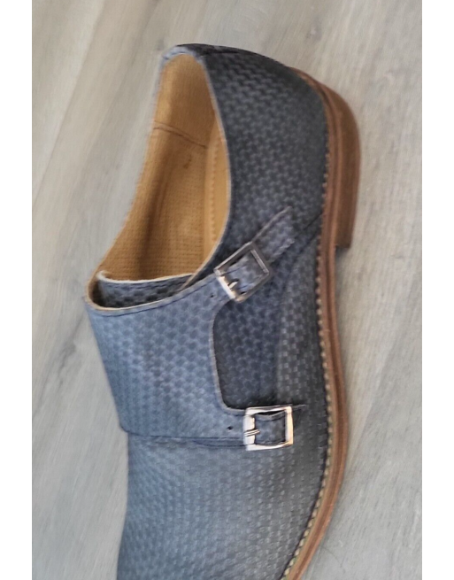Mocassins cuir bleu canné double boucle talon plat