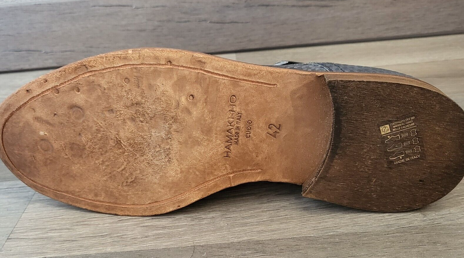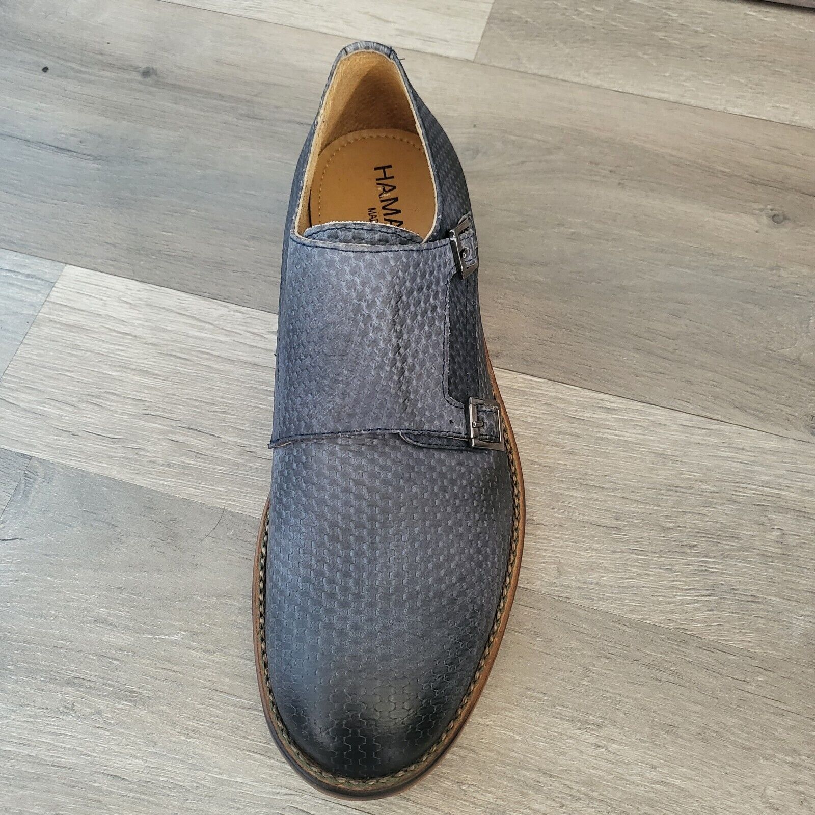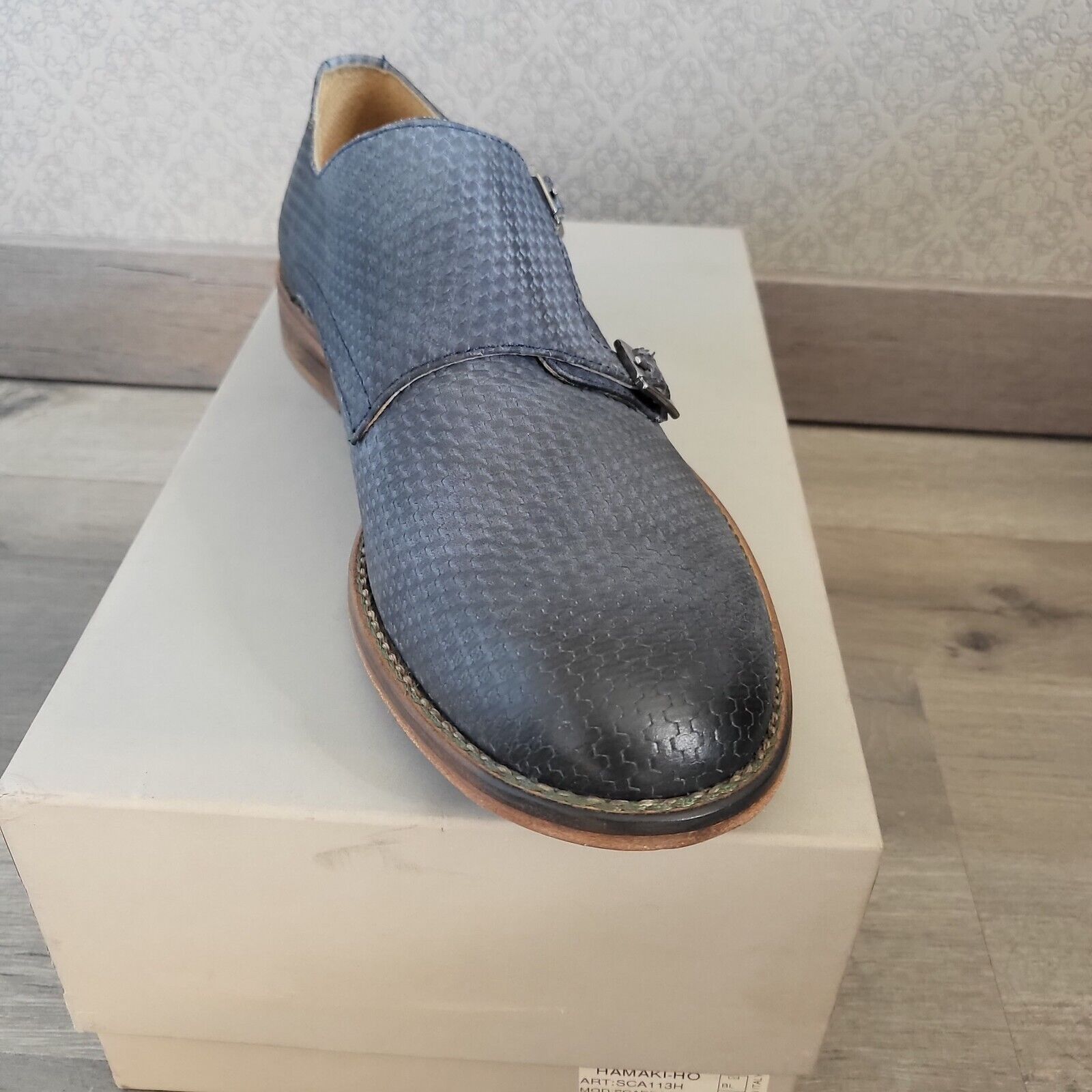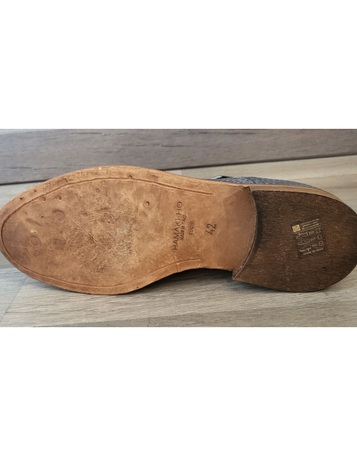 HAMAKI HO Mocassins cuir bleu canné double boucle talon plat Taille 45