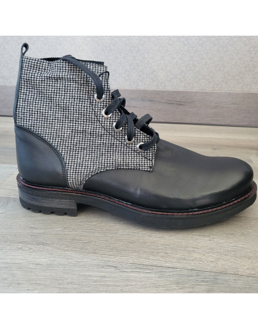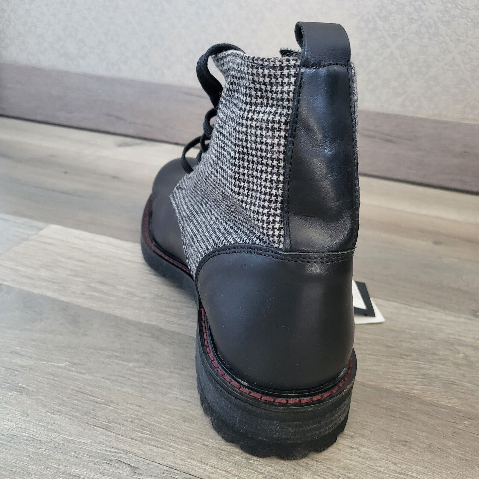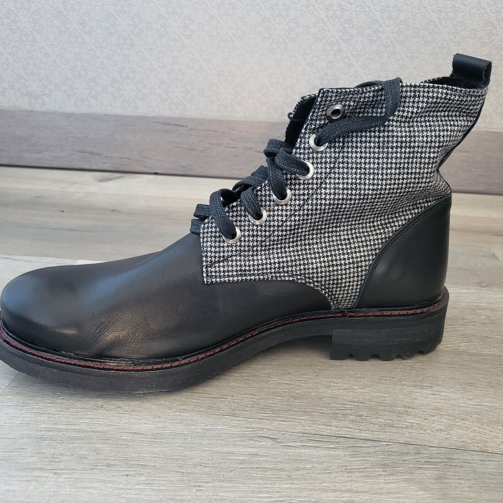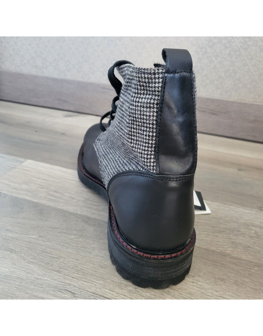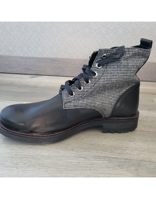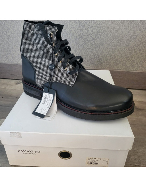 HAMAKI HO Bottines cuir noir corps pied de poule talon plat Taille 44