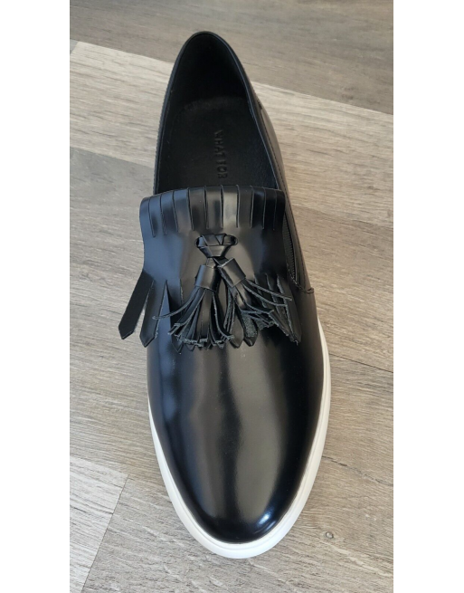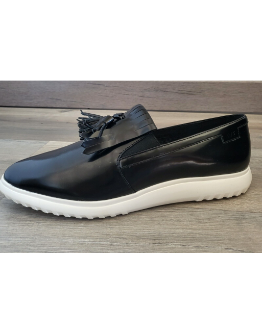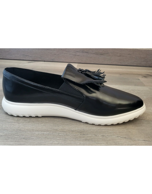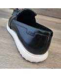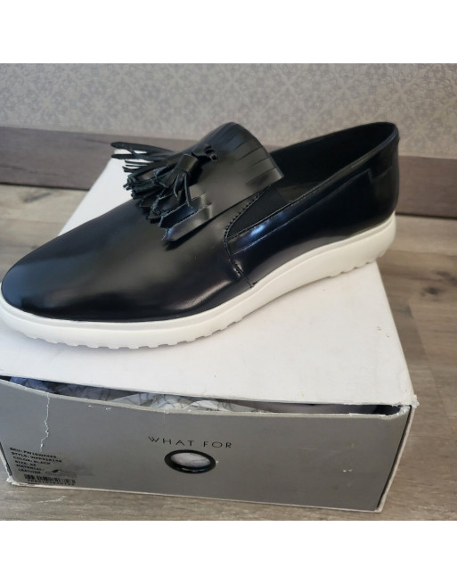 WHAT FOR Mocassins noir vernis bavette à frange semelle blanche Taille 41