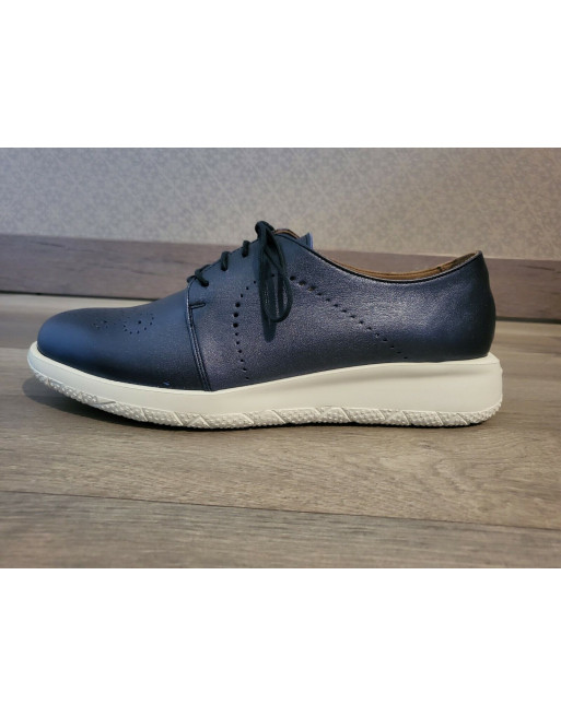 Derbies cuir bleu talon plat à lacets
