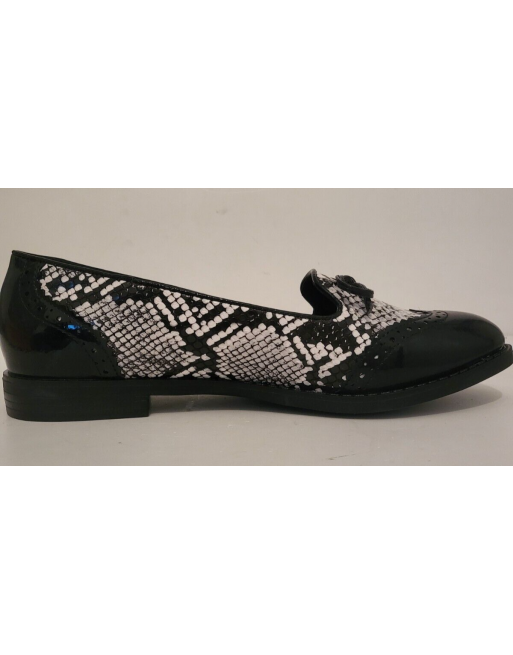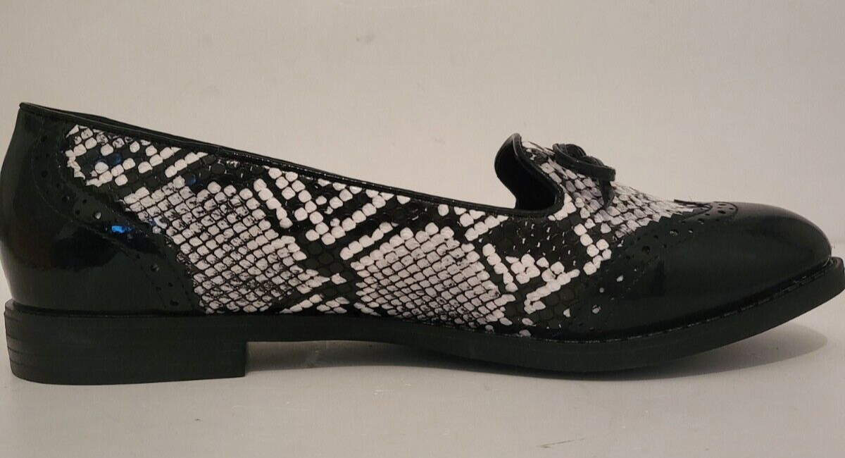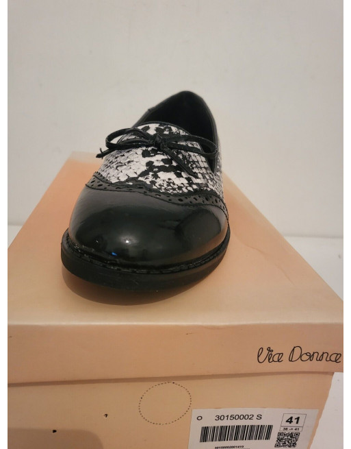 VIA DONNA Mocassins noir et blanc aspect croco talon plat Taille 41