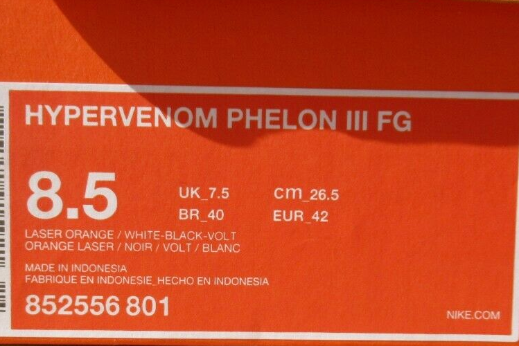 NIKE HYPERVENOM PHELON III FG CHAUSSURE DE FOOT 852556801 T:42 (8.5)