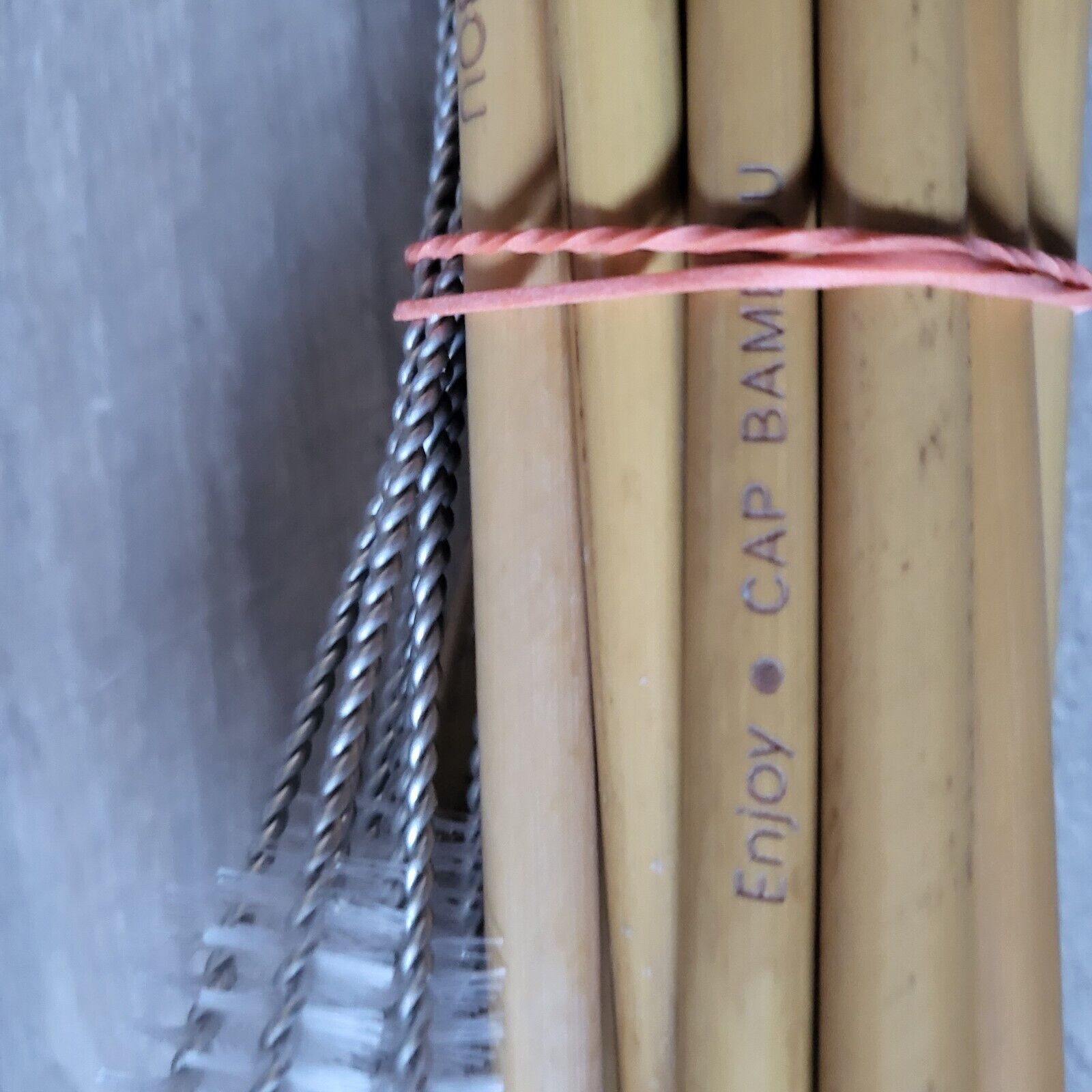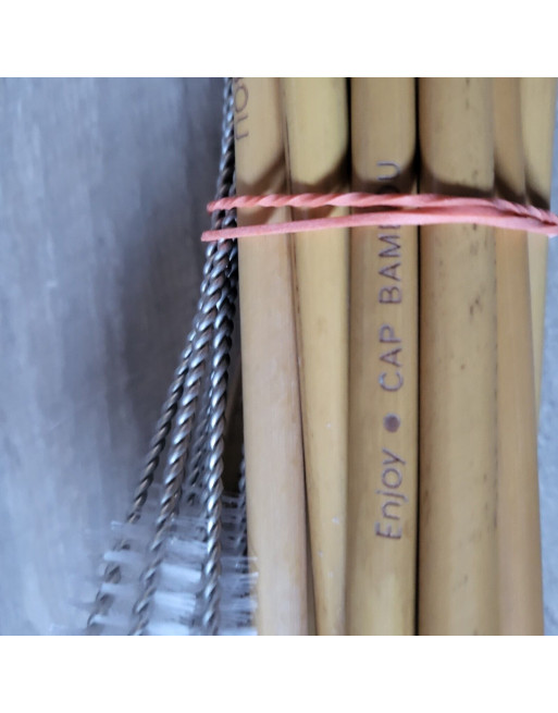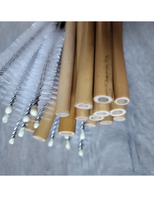 Lot de 15 pailles bambou + 15 goupillons 21 cm