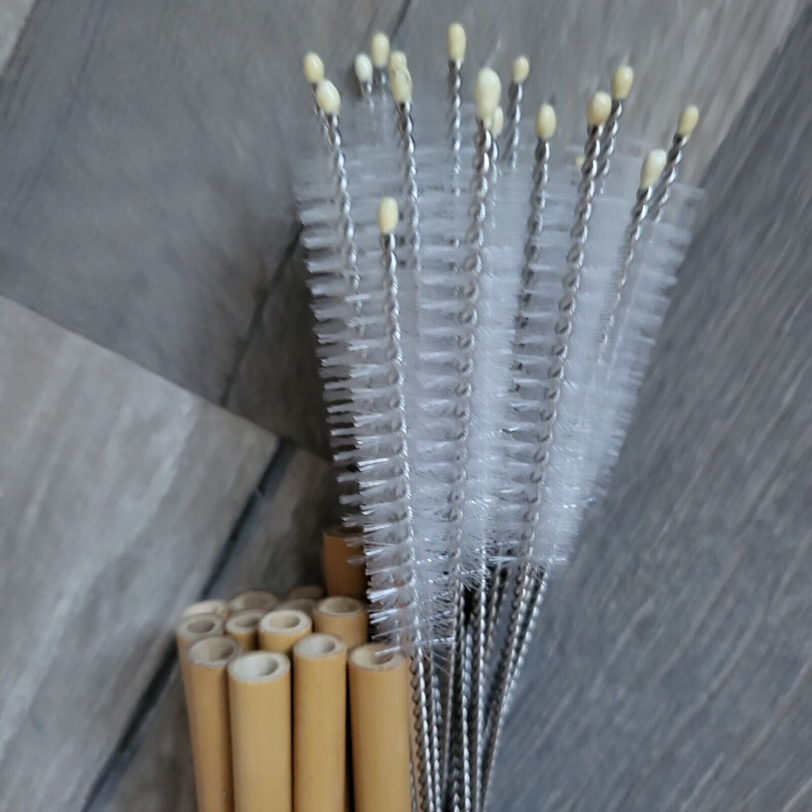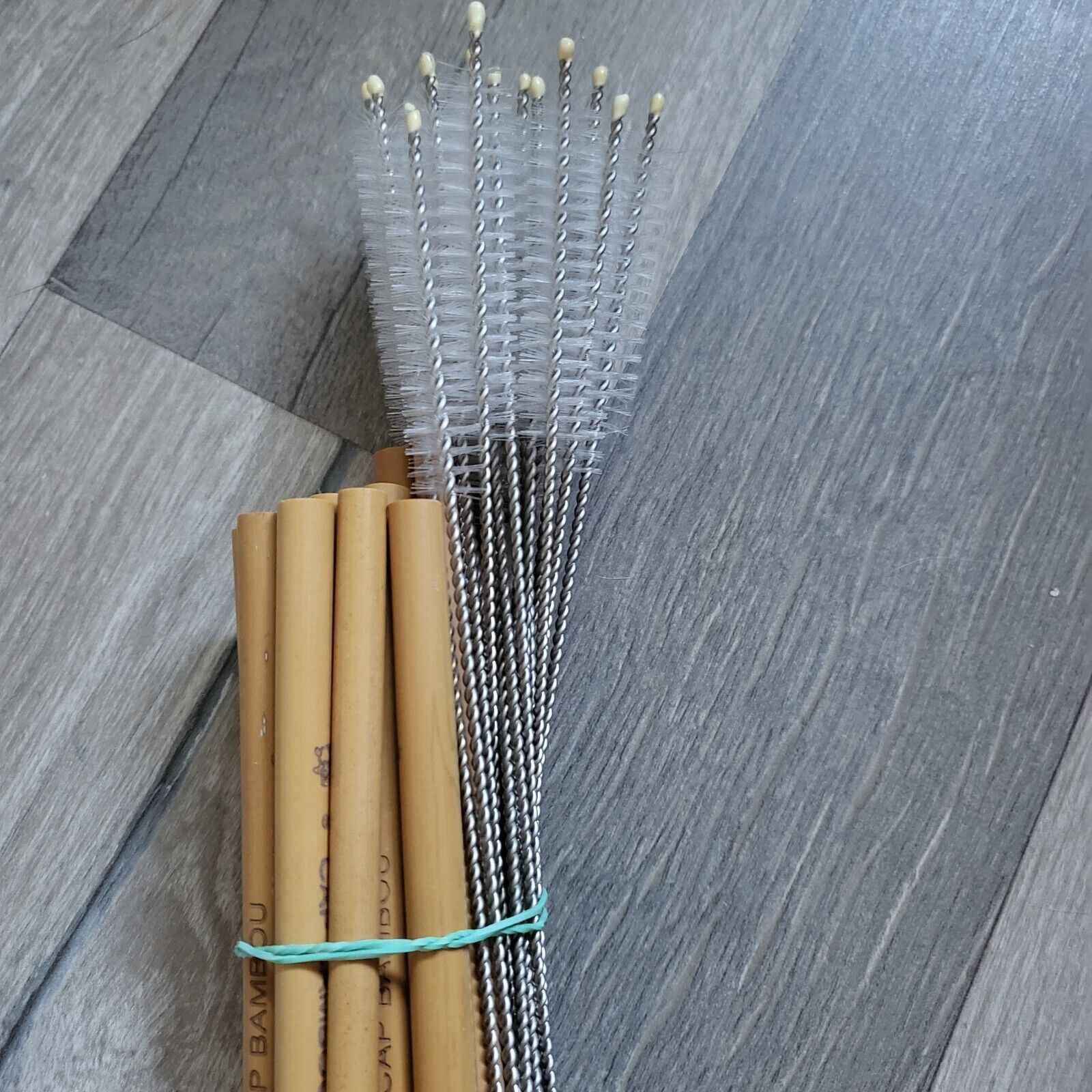 ENJOY Lot de 20 pailles bambou cocktail 13 cm + 20 goupillons 21 cm