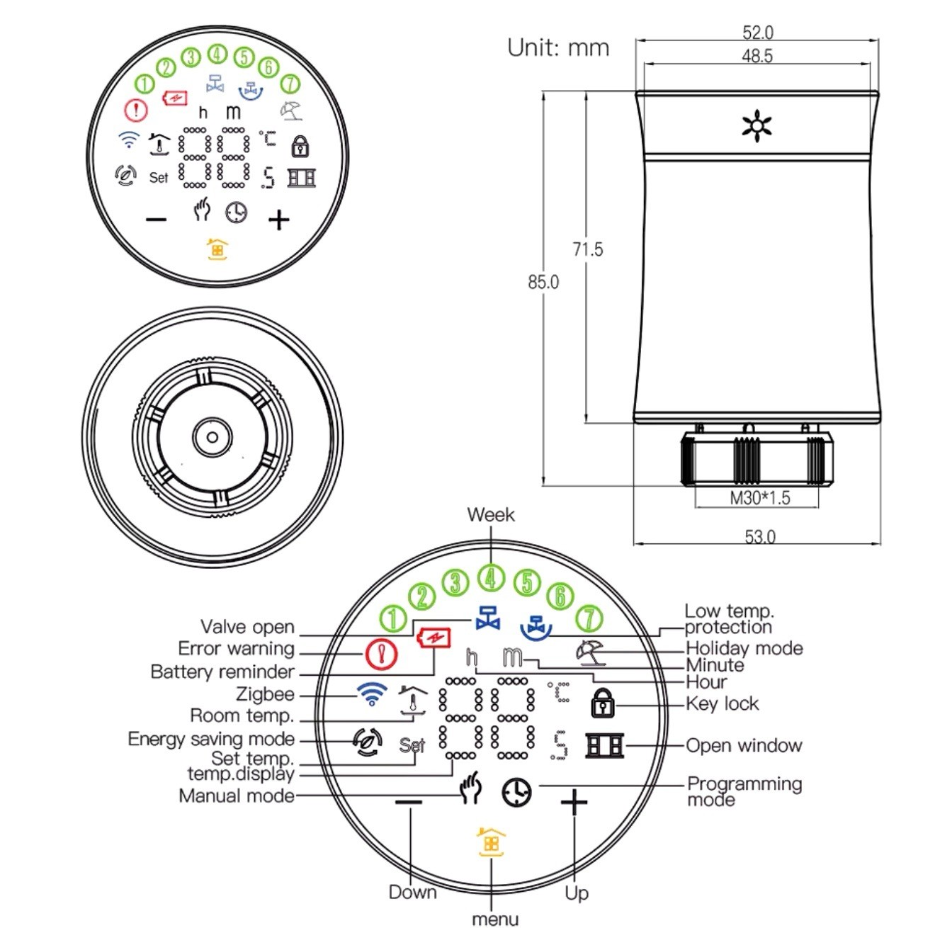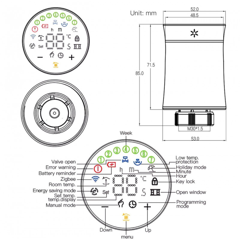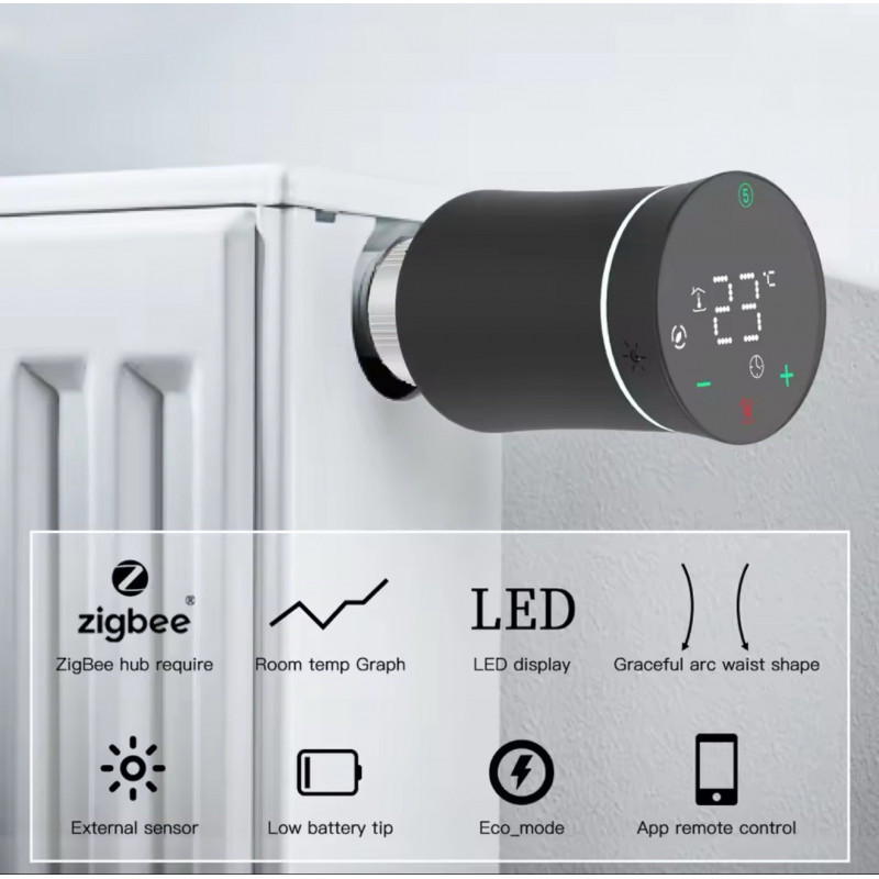 Fonctionne extrêmement bien avec un capteur externe sur la vanne qui fournit des lectures précises de la température de la maison, assure un contrôle beaucoup plus pratique et intelligent de votre style de vie intelligent; Contrôle tactile doux et sensible sur l'écran d'accueil, ensemble avec un contrôle intelligent sur les smartphones, sont tous deux présentés pour cette nouvelle vanne de radiateur zigbee.