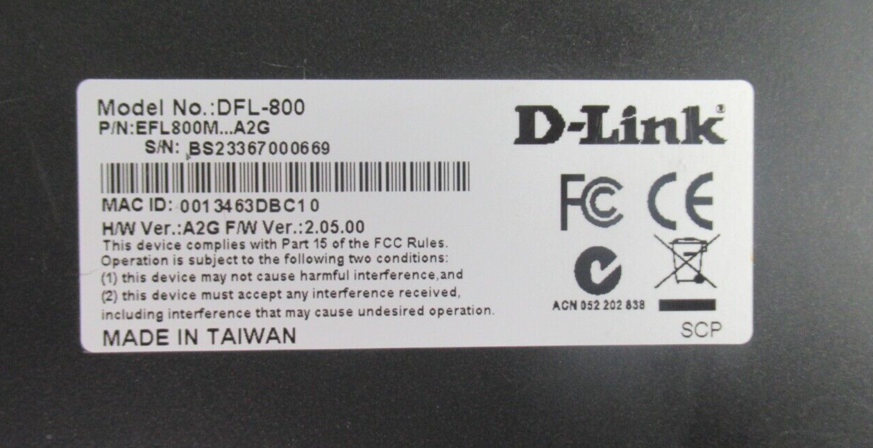 Le DFL-800 est une solution de sécurité puissante qui fournit une traduction d'adresses réseau (NAT) intégrée, un pare-feu SPI, des fonctionnalités avancées de filtrage de contenu, une protection IDS, une gestion de la bande passante, ainsi qu'une prise en charge du réseau privé virtuel (VPN). Le matériel DFL-800 comprend sept ports LAN fiables, deux ports WAN pour l'équilibrage de charge et un port DMZ configurable par l'utilisateur pour prendre en charge les serveurs locaux tels que la messagerie électronique, le Web et le FTP. Toutes ces fonctionnalités s'intègrent facilement dans un châssis de bureau qui peut être facilement intégré à votre réseau.