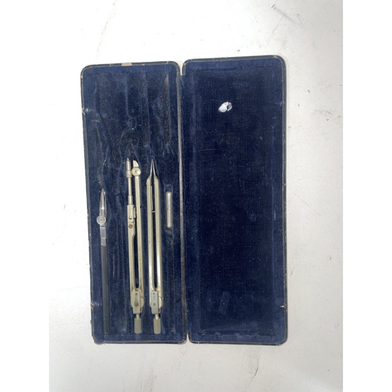 Ancien Vintage Boite de COMPAS en métal Dessin industriel