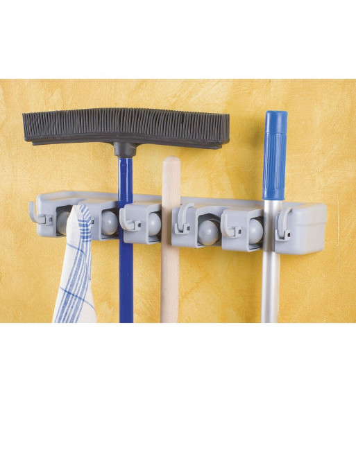 Range balais muni de boules-cliquets bloquant automatiquement le manche des balais de 1.5 à 3 cm de diamètre.