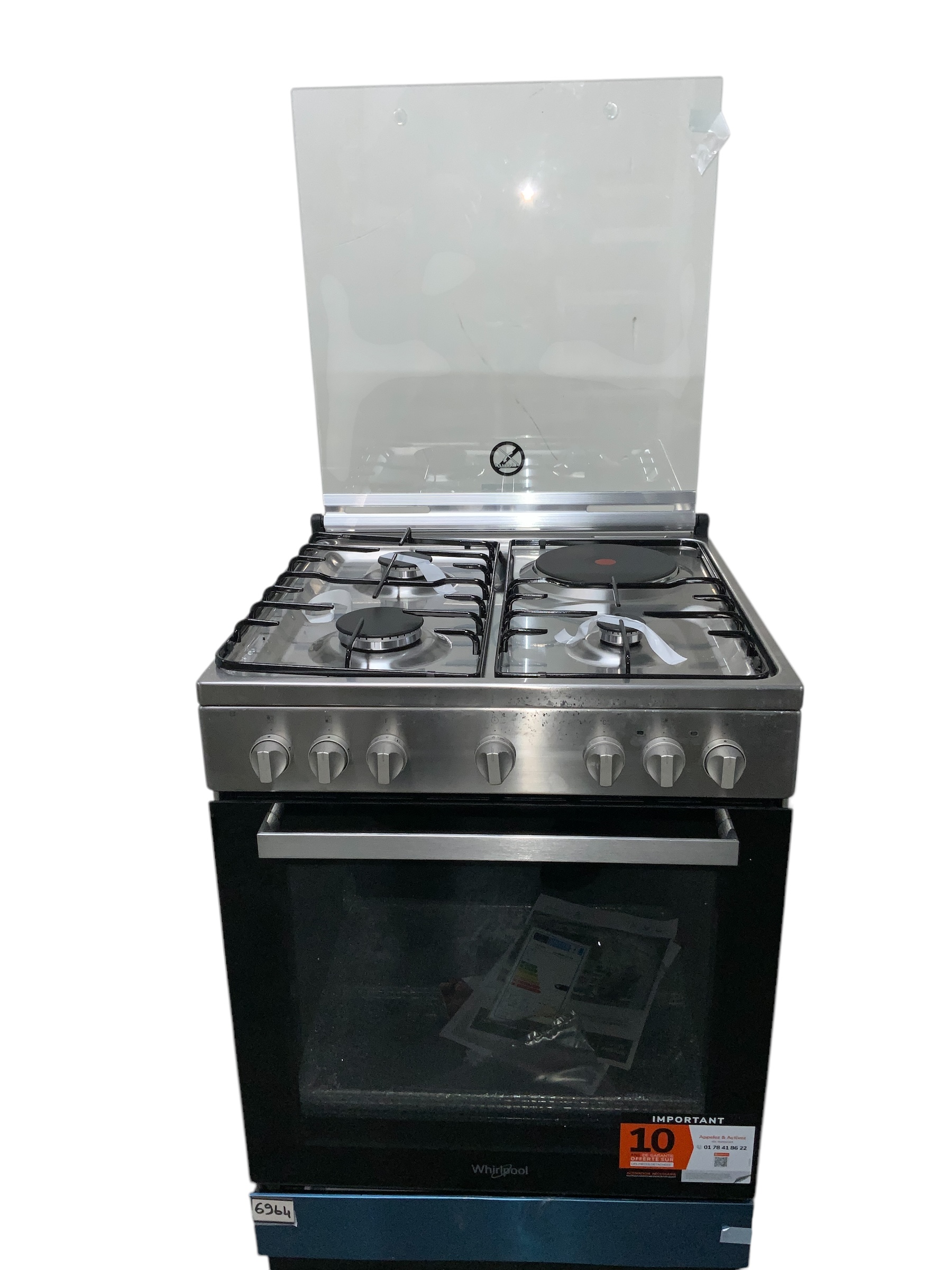 🌟 Cuisinière Mixte WHIRLPOOL HS68M8PCX/FR – Polyvalence, Performance et Élégance 🍳🔥 La Hotpoint HS68M8PCX/FR est une cuisinière mixte alliant la réactivité du gaz à la précision de l’électricité. Avec son design en inox et ses fonctionnalités avancées, elle s’intègre parfaitement dans toutes les cuisines modernes. ✨ Caractéristiques principales : • 🔘 4 foyers : 3 gaz (1000 W, 3000 W, 1750 W) et 1 électrique (2000 W) pour une cuisson adaptée à chaque plat. • 🔥 Four électrique multifonction : Capacité de 83 L avec nettoyage catalyse pour un entretien facilité. • 💨 Fonction vapeur : Préserve les nutriments et assure des plats moelleux et dorés. • 📏 Dimensions (L x H x P) : 60 x 90 x 60 cm – S’intègre aisément dans votre espace cuisine. • 🛠️ Commandes frontales : Manettes ergonomiques pour un contrôle précis. • 🔒 Sécurité : Vitre de porte démontable pour un nettoyage simplifié.     🌍 Classe énergétique : A – Performance énergétique optimale. ⚪ Couleur : Inox – Finition élégante et moderne. 🔧 Garantie : 2 ans pièces et main-d’œuvre.  📌 La WHIRLPOOL HS68M8PCX/FR, c’est la solution idéale pour les amateurs de cuisine recherchant polyvalence, performance et design. REF 6964