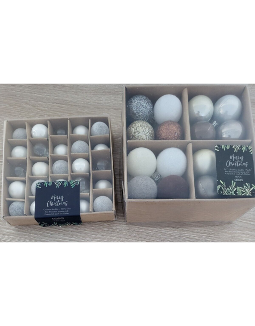 CASA Lot de 32 boules de Noël verre gris/blanc Ø 3 cm + 25 boules blanc Ø 2 cm