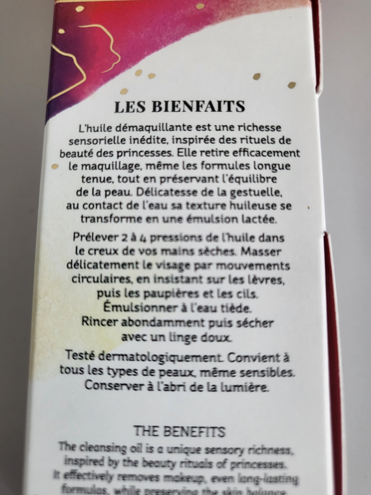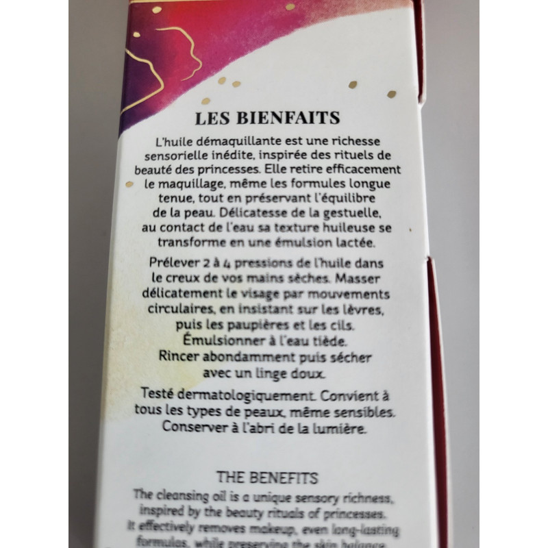 L’huile démaquillante est d’une richesse sensorielle inédite, inspirée des rituels de beauté des princesses. Délicatesse de la gestuelle, au contact de l’eau sa texture huileuse se transforme en une émulsion lactée.