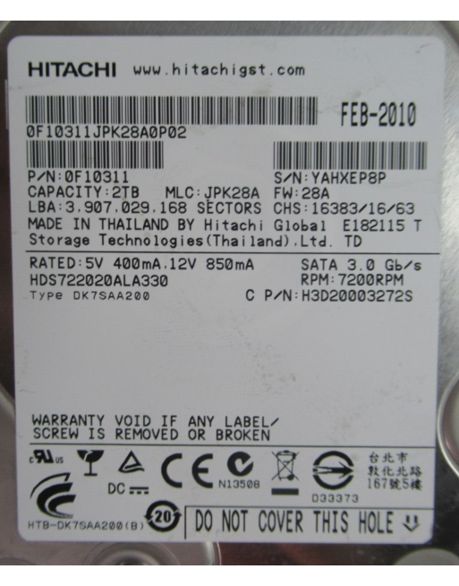 HITACHI DK7SAA200 DISQUE DUR 2TB 7.2K RPM SATA 3.0