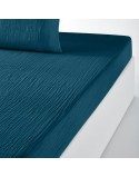 LA REDOUTE INTERIEURS Drap housse en gaze de coton bleu de prusse 90x190