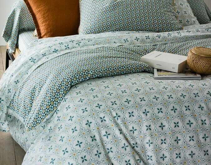 • Housse de couette imprimée recto motifs style mosaïque, verso imprimé de micro-motifs assortis