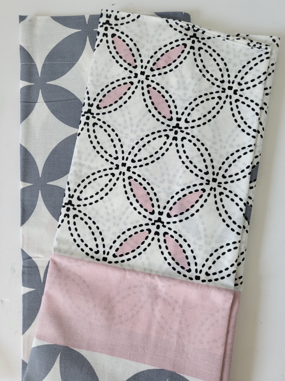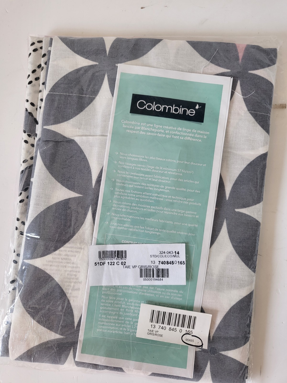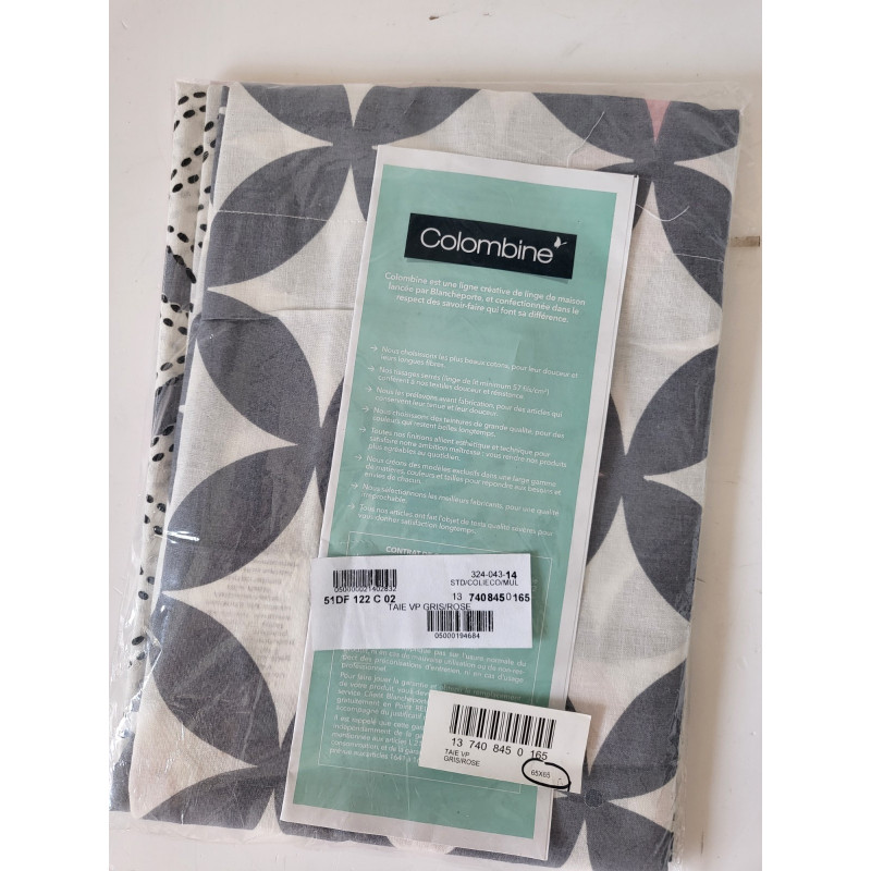 COLOMBINE Taie d'oreiller en coton gris/rose imprimé 65x65 cm