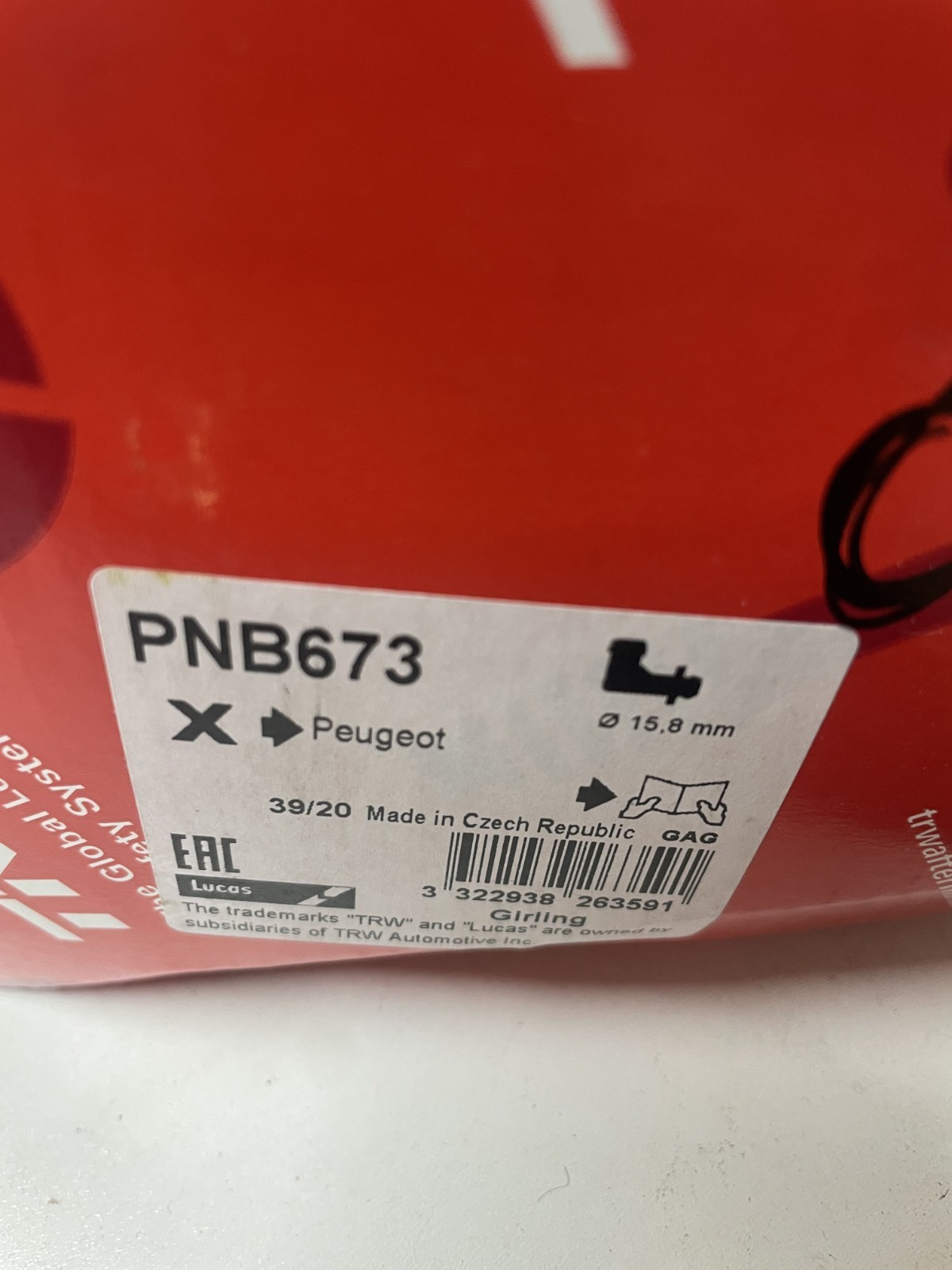 Maître-cylindre d'embrayage Matière plastique PNB673 TRW pour PEUGEOT