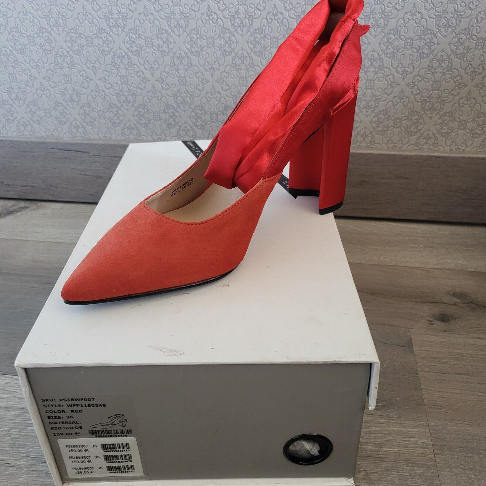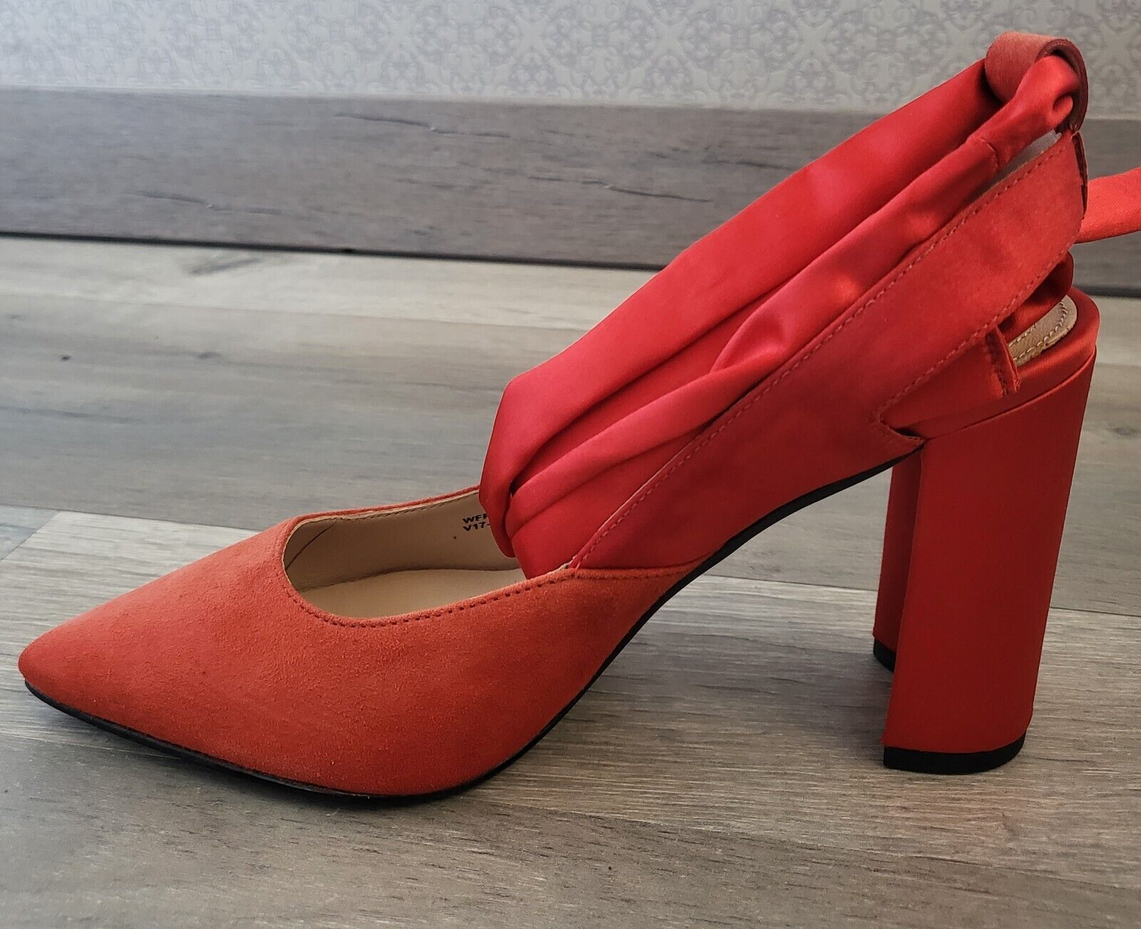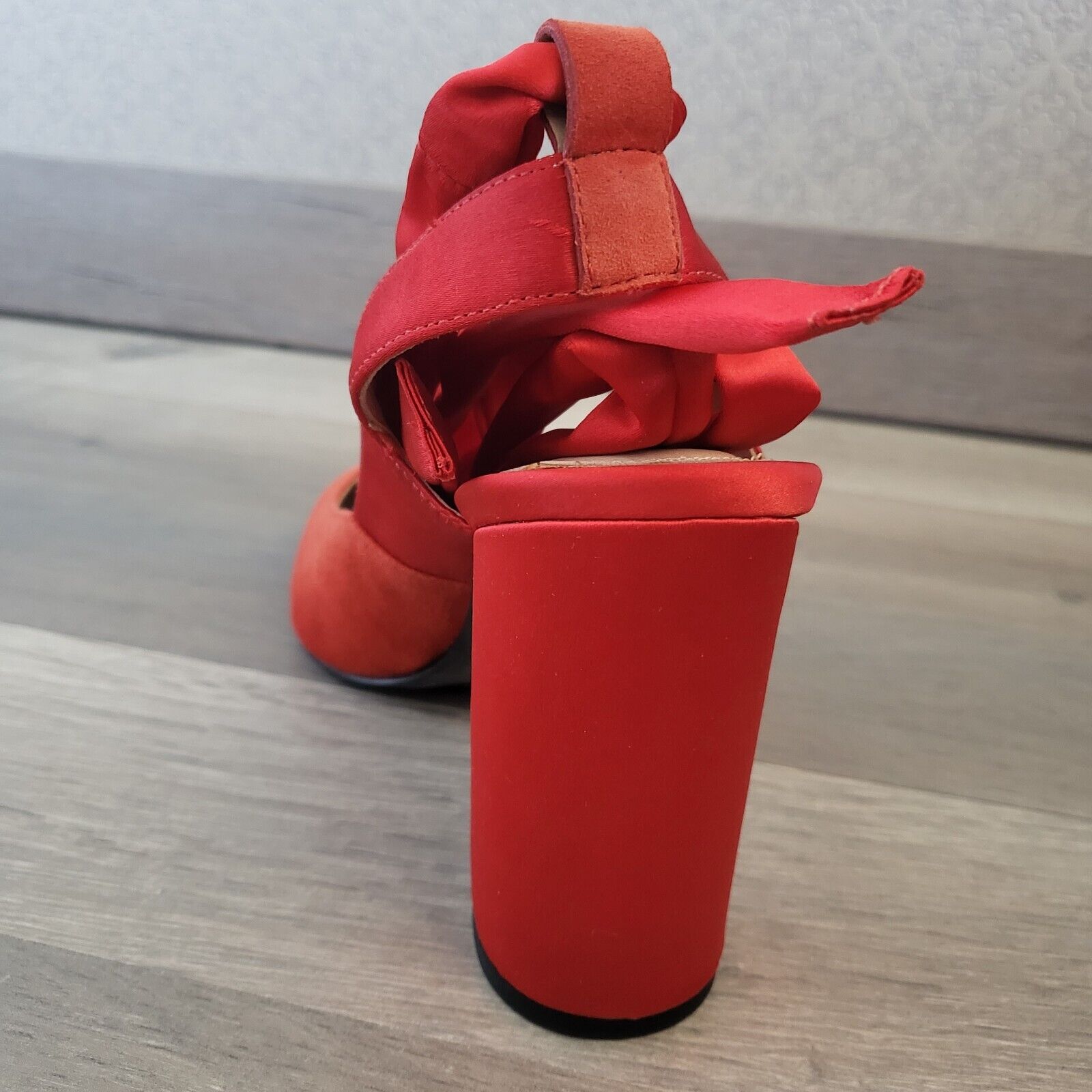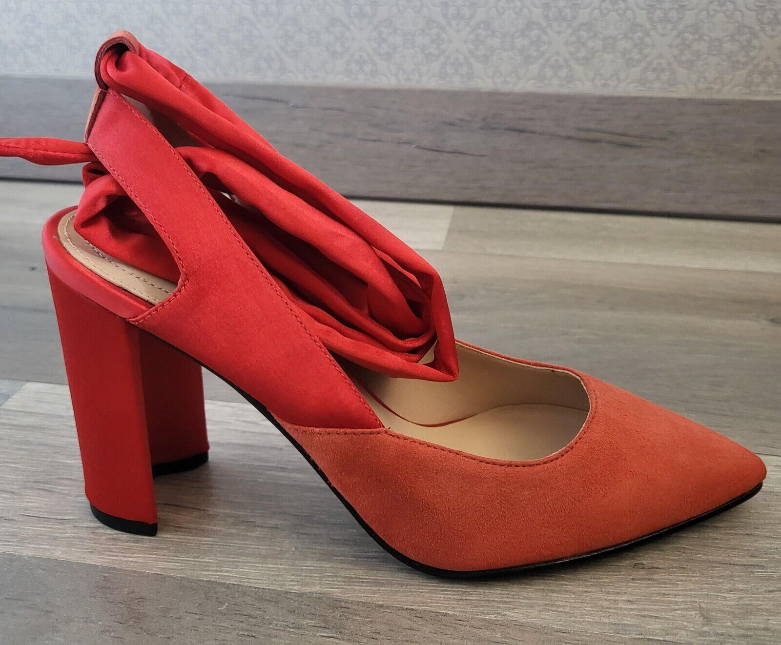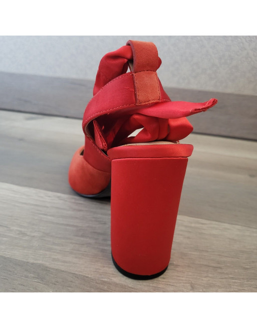 WHAT FOR Escarpins daim cuir rouge talon haut cordelette satin rouge Taille 36