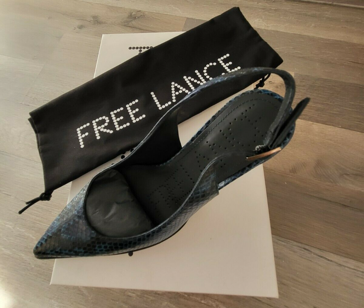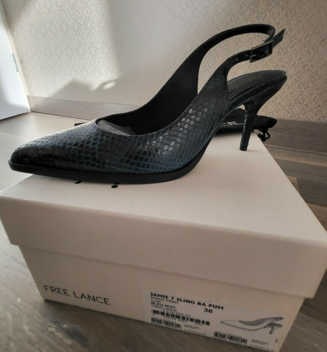 FREE LANCE Jamie 7 sling Ba Pum Escarpins cuir serpent bleu nuit taille 36