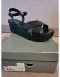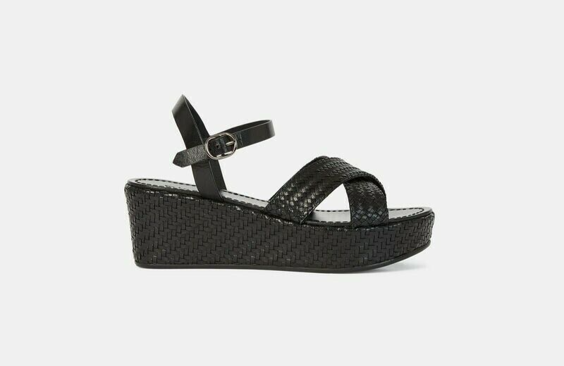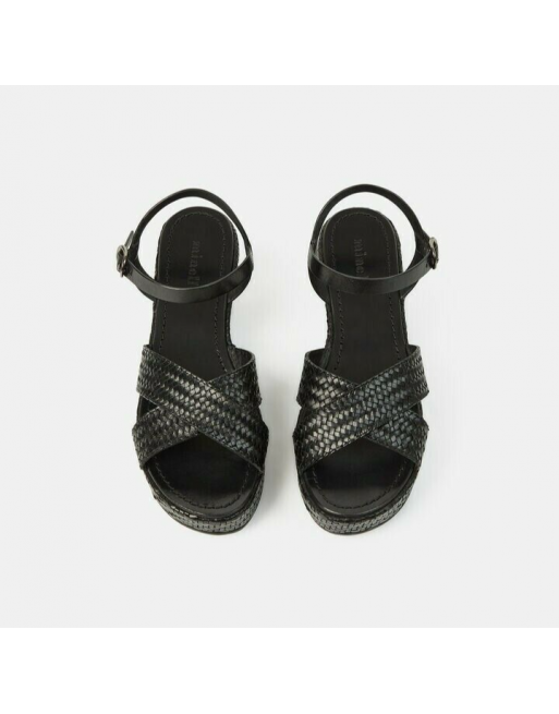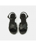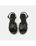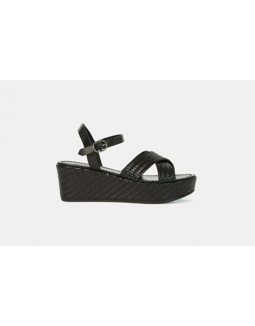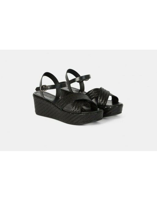 Sandales Cellany cuir noir tressées talon compensé