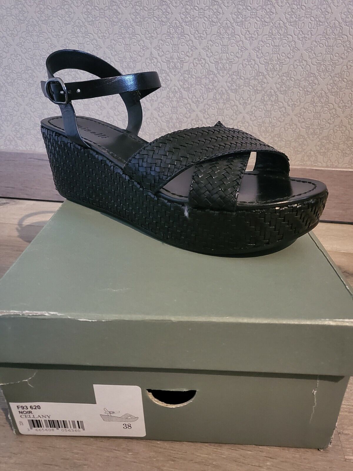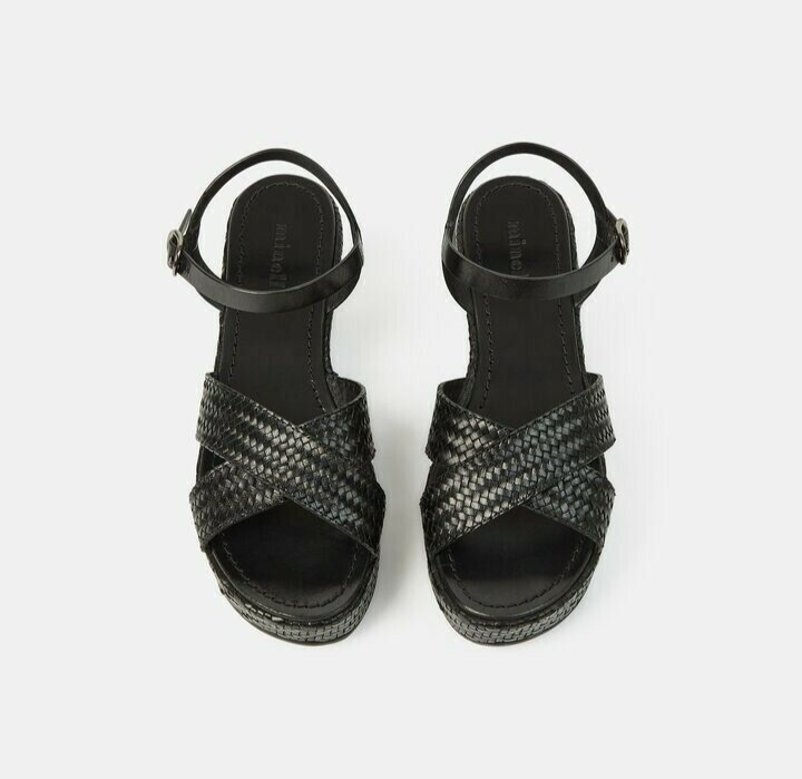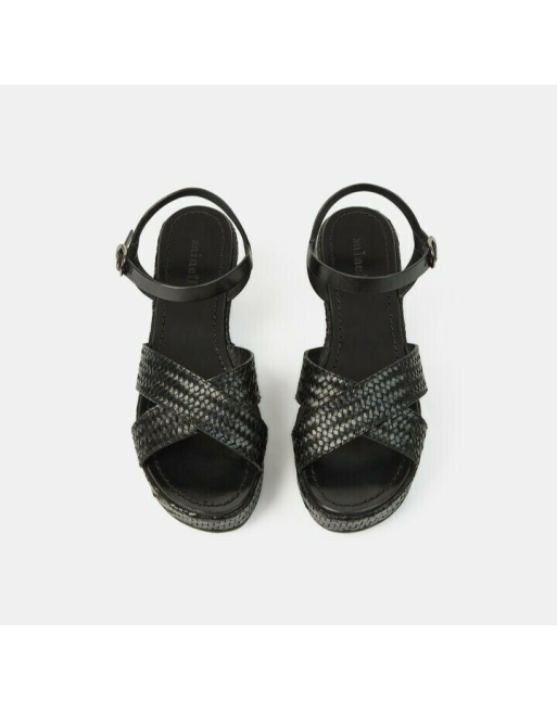 MINELLI Sandales Cellany cuir noir tressées talon compensé Taille 38