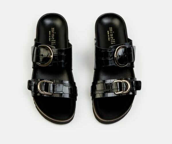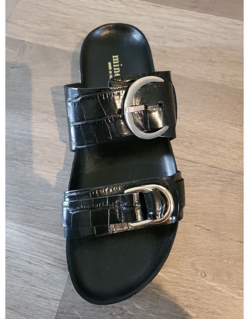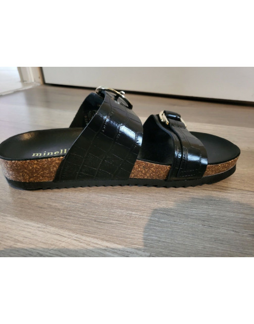 MINELLI Mules cuir de veau noir double bride talon 3 cm Taille 38