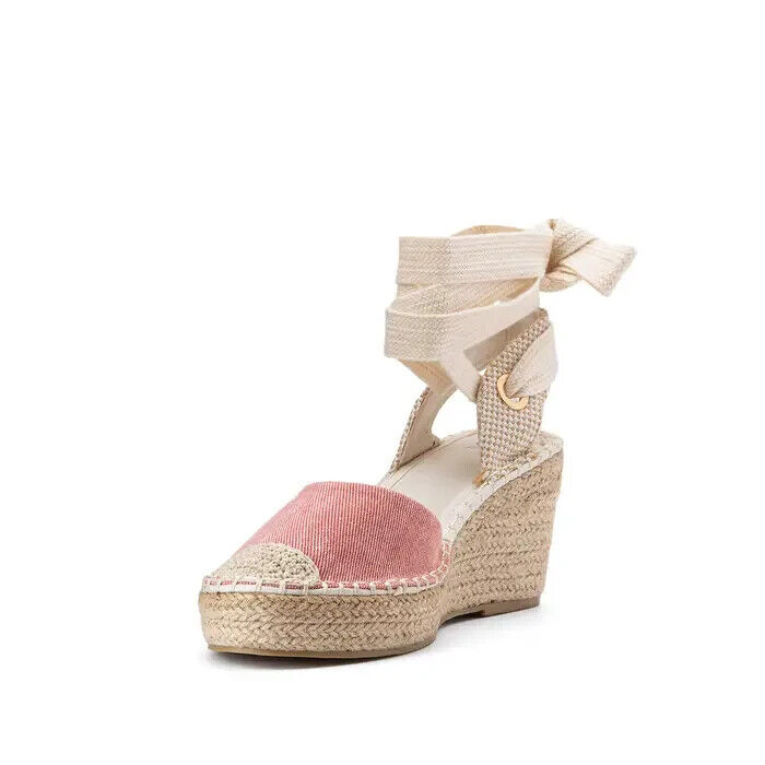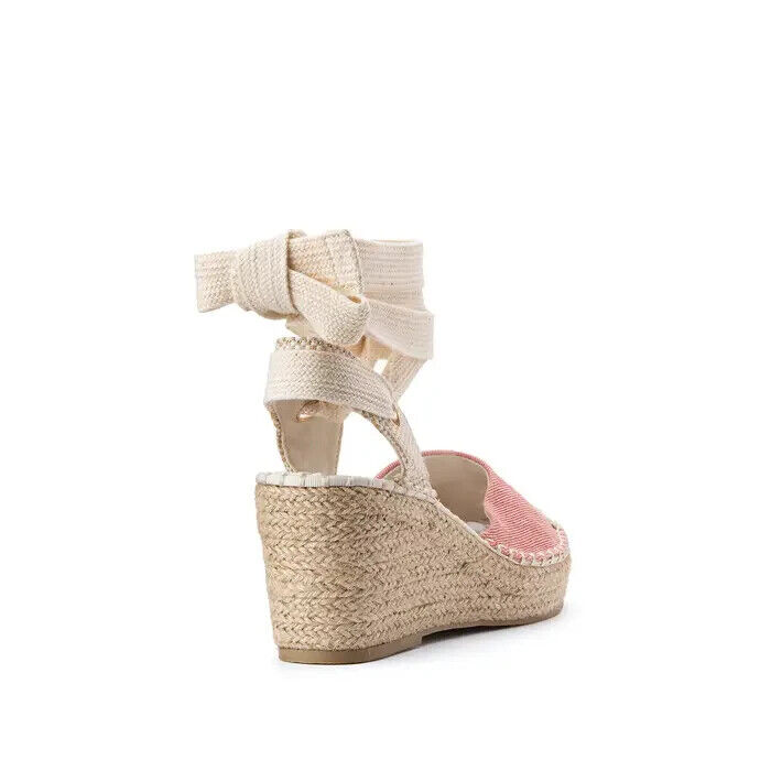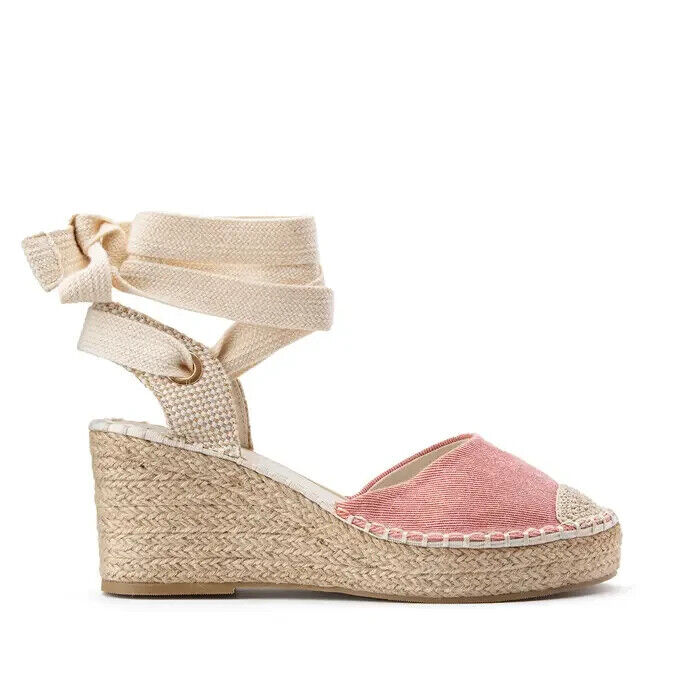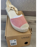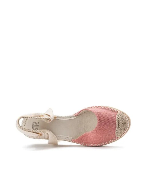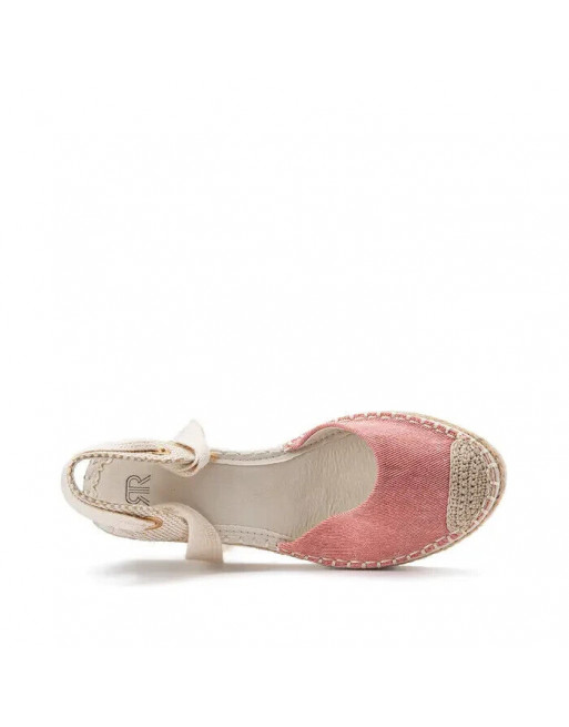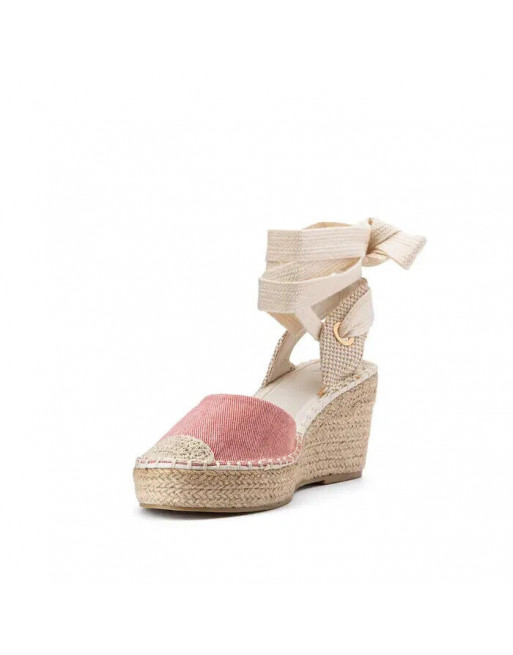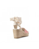Sandales toile rose talon corde compensé 8 cm