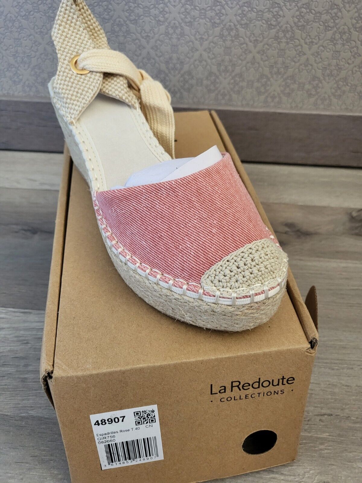 LA REDOUTE COLLECTIONS Sandales toile rose talon corde compensé 8 cm Taille 40