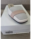 Mules cuir gris ivoire rose talon plat