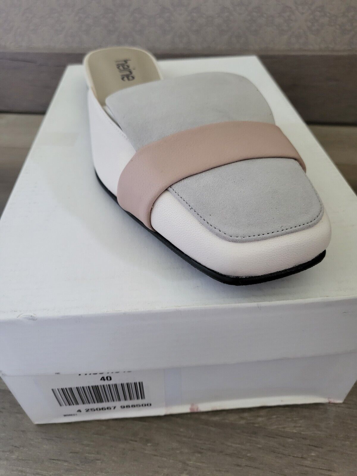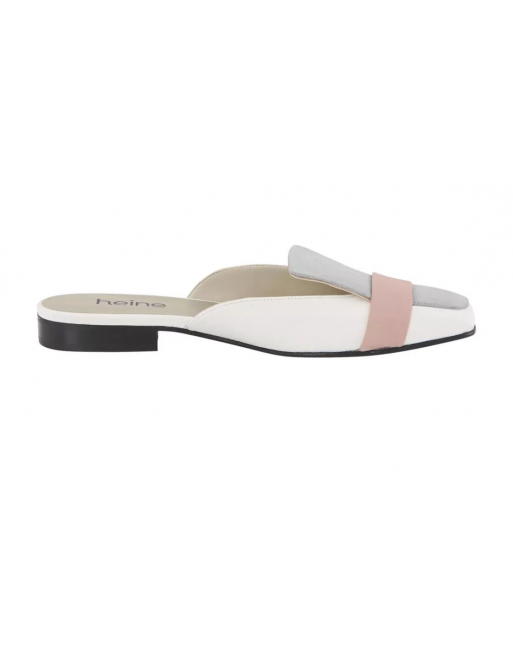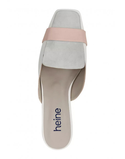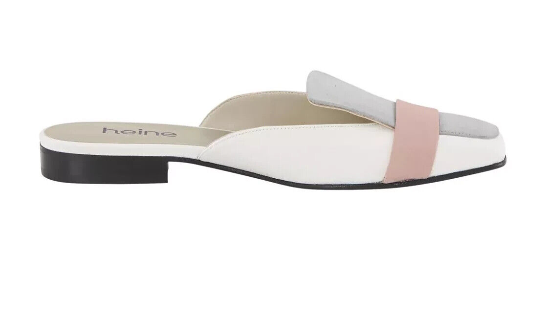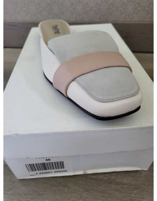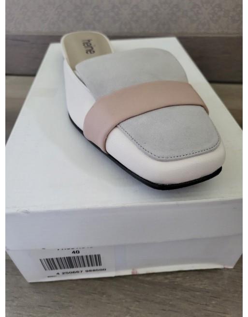 HEINE Mules cuir gris ivoire rose talon plat Taille 40