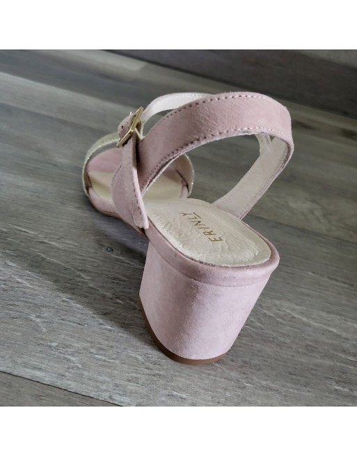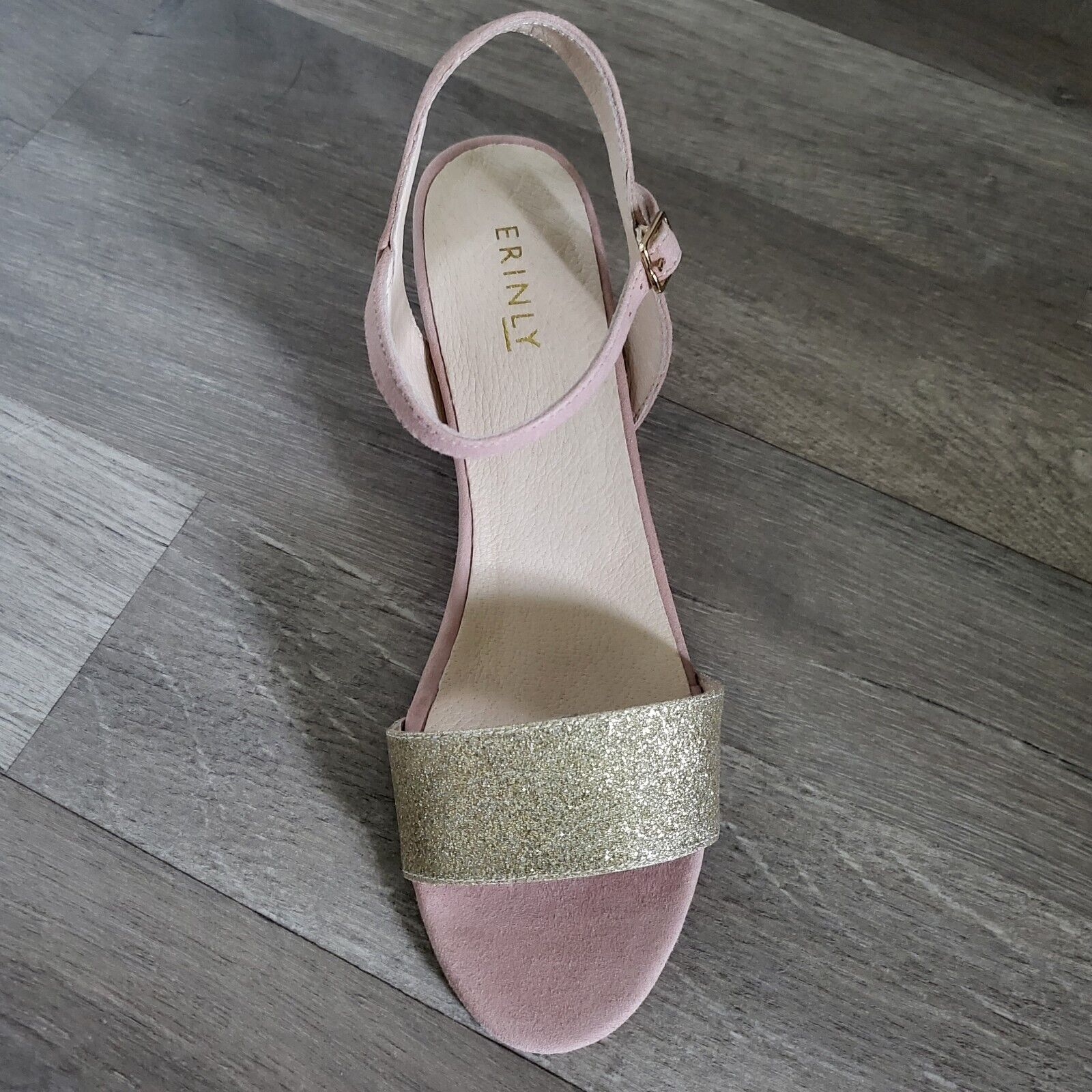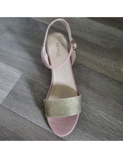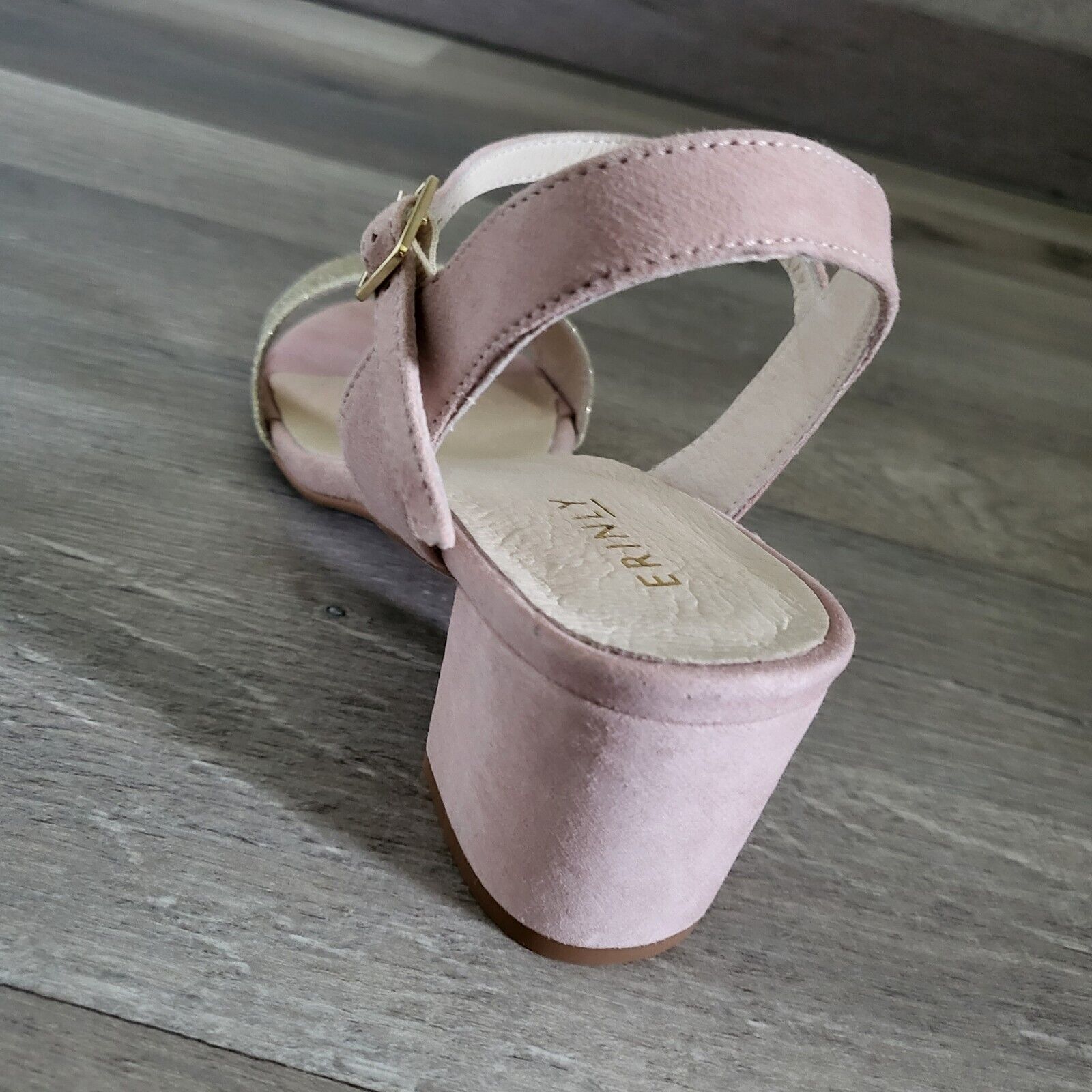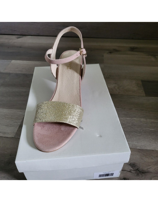 ERINLY Sandales cuir rose métallisé talon 6.5 cm Taille 38
